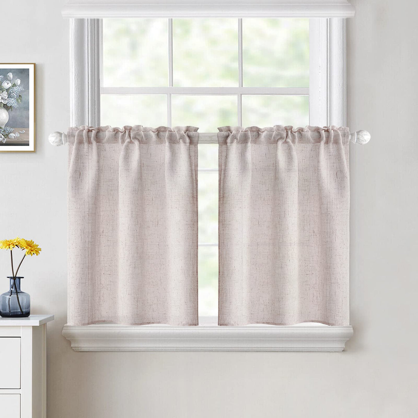Ready Made: Package Contains 2 Panels Tier Curtains, Each Panel Measures W26'Xl24', Each Set W52'Xl24' (Measured From The Top Edge Of The Rod Pocket To The Bottom). And 3' Rod Pocket Opening Fits Most Curtain Rods Less Than 1.8' In Diameter. Linen Texture: Made Of Premium Linen Blend Fabric For A Softer Touch, Durable And Wrinkle-Free. Compared With Pure Polyester Curtains, This Fabric Is Designed To Give A Rich Linen Textured Look, Adding A Natural Flavor To Your Room. Light Filtering: Translucent Curtains With Proper Thickness Can Effectively Block Harsh Light From Entering The Room And Let In Natural Light While Providing You With Enough Privacy. You Can Shade The Lower Part Of A Window For Privacy Or Decoration, Or Use It Alone For Shorter Windows. Wide Application: Simple Yet Elegant Short Curtains Add A Modern Look To Your Room, They Can Easily Freshen And Brighten Your Space. They Can Be Easily Integrated Into Your Kitchen, Bathroom, Laundry Room, Coffee Shop, Living Room, Studio Or Wherever You Use Them. Easy Care: Machine Washable In Cold Water (Make Sure The Water Temperature Is Below 86?/30?), Tumble Dry, Do Not Iron, Do Not Bleach.