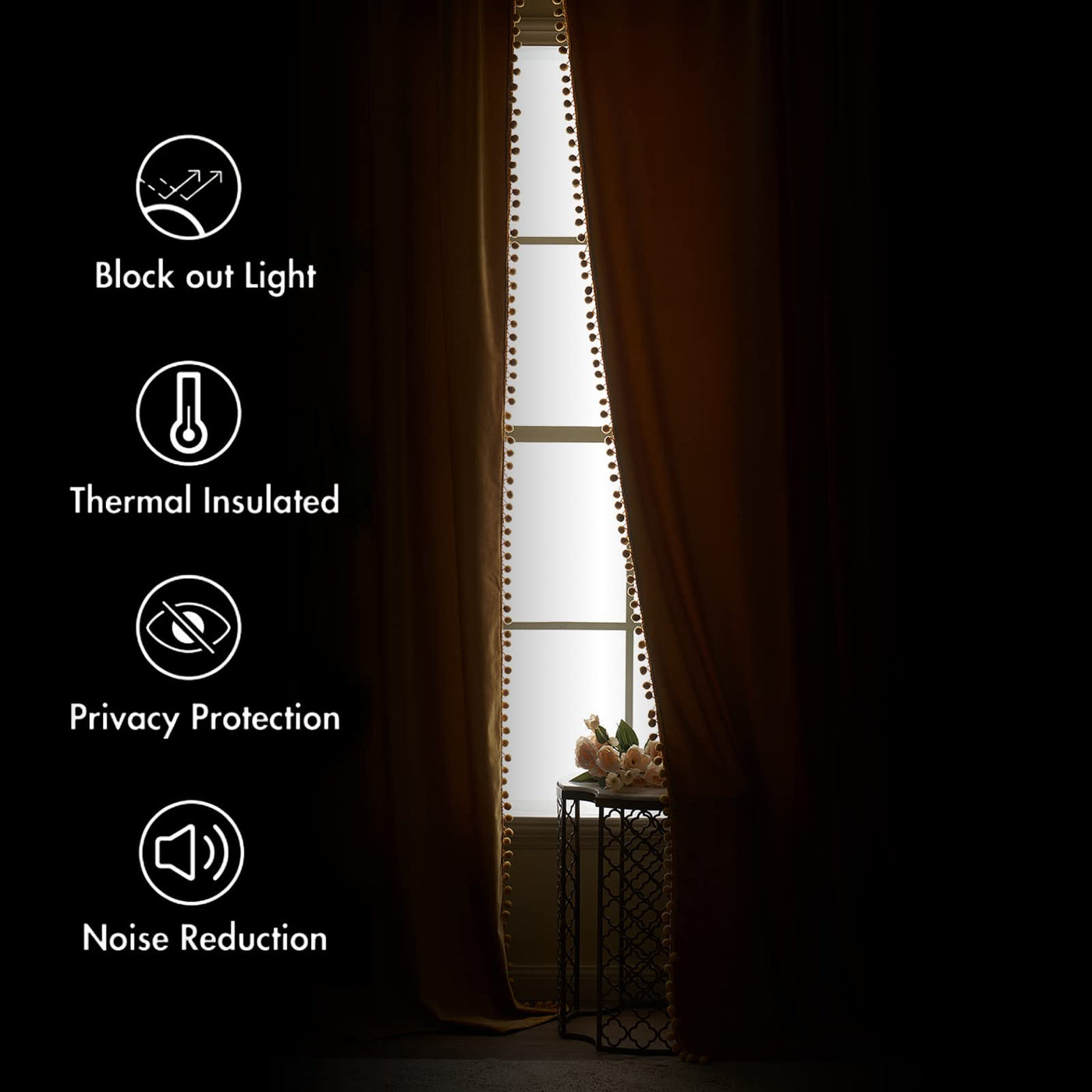 Miulee Pom Pom Velvet Curtains Look Very Pretty And Luxurious.All The Pom-Poms Are Sewn Tightly On Both Sides Of The Curtain And Will Not Fall Out.Using High-Density Velvet,These Curtains Perform Exquisite And Silky Touch.Smoothly To Pull And Even Friendly To Children'S Tender Skin.