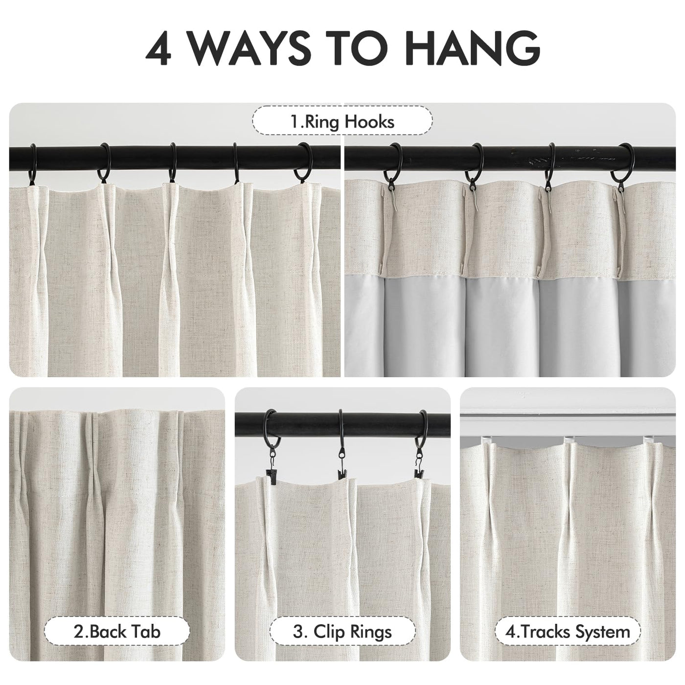 Miulee Natural Pinch Pleated 100% Blackout Linen Curtains 96 Inch Length 2 Panels Set, Pleat Curtains With Pin Hooks, Black Out