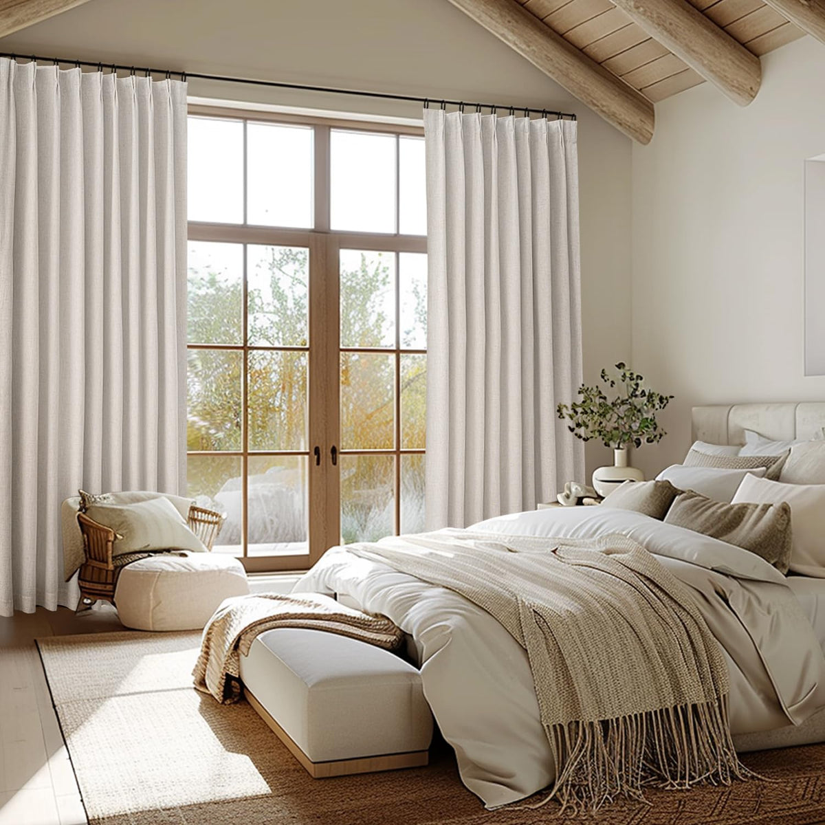 Miulee Natural Pinch Pleated 100% Blackout Linen Curtains For Bedroom, Room Darkening Light Blocking Window Curtains 84 Inches L