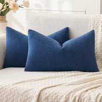 Miulee Navy Blue Couch Pillow Covers 12X20 Inch, Set Of 2 Soft Chenille Decorative Lumbar Throw Pillow Covers Farmhouse For Sofa Living Room Bed