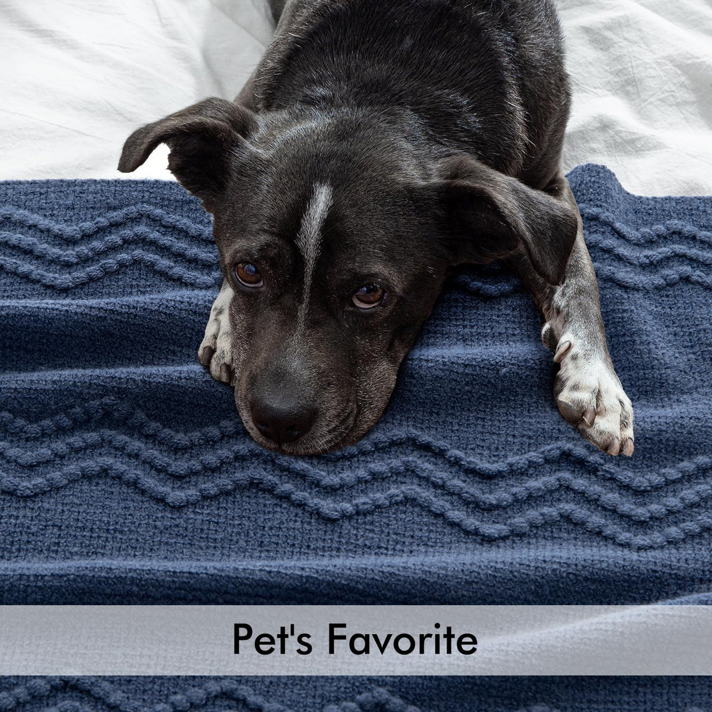 Miulee Navy Blue Knitted Throw Blanket For Couch Textured Knit Blanket With Tassels Cozy Woven Boho Bed Blanket For Sofa Bed Chair Acrylic Wave Pattern 50'X60'