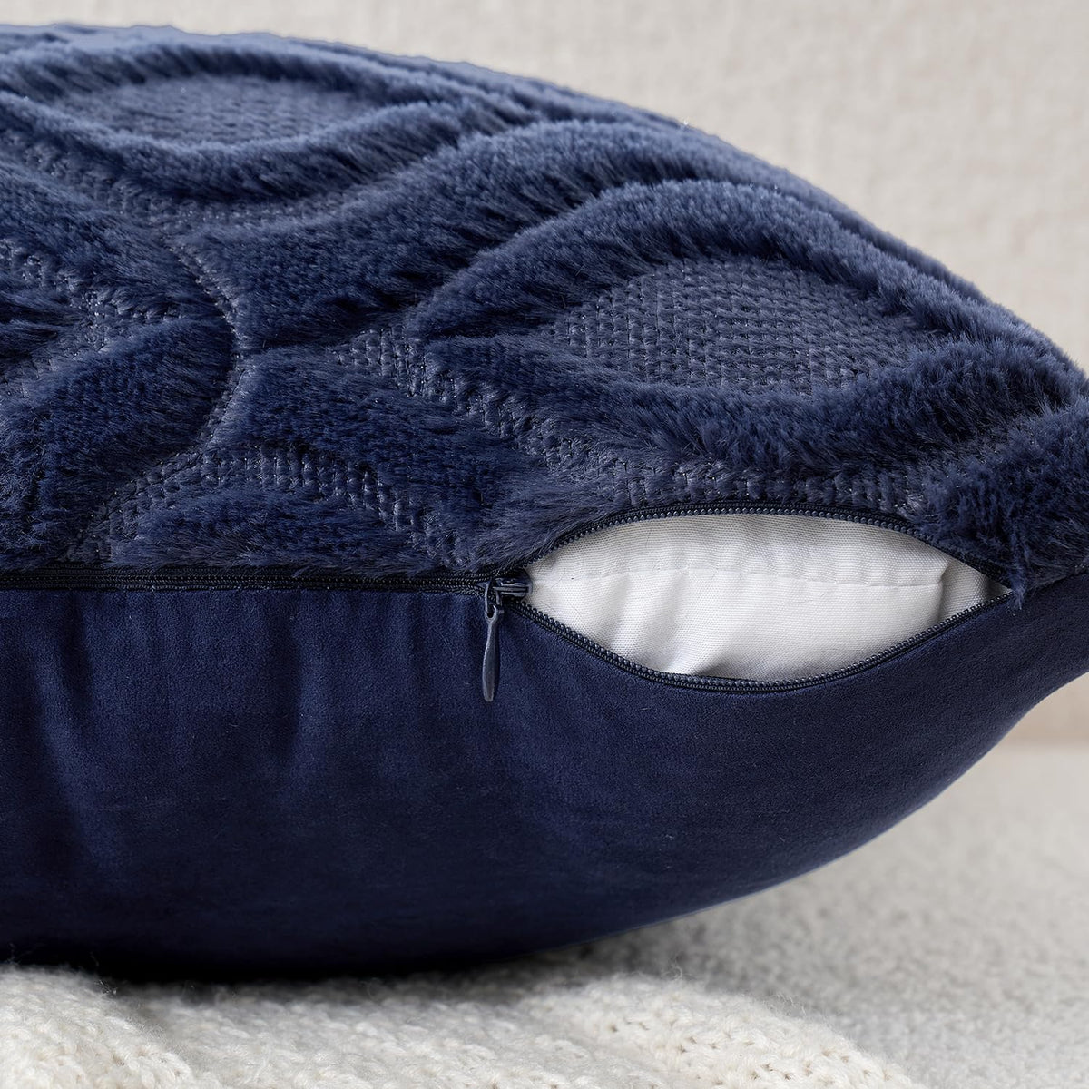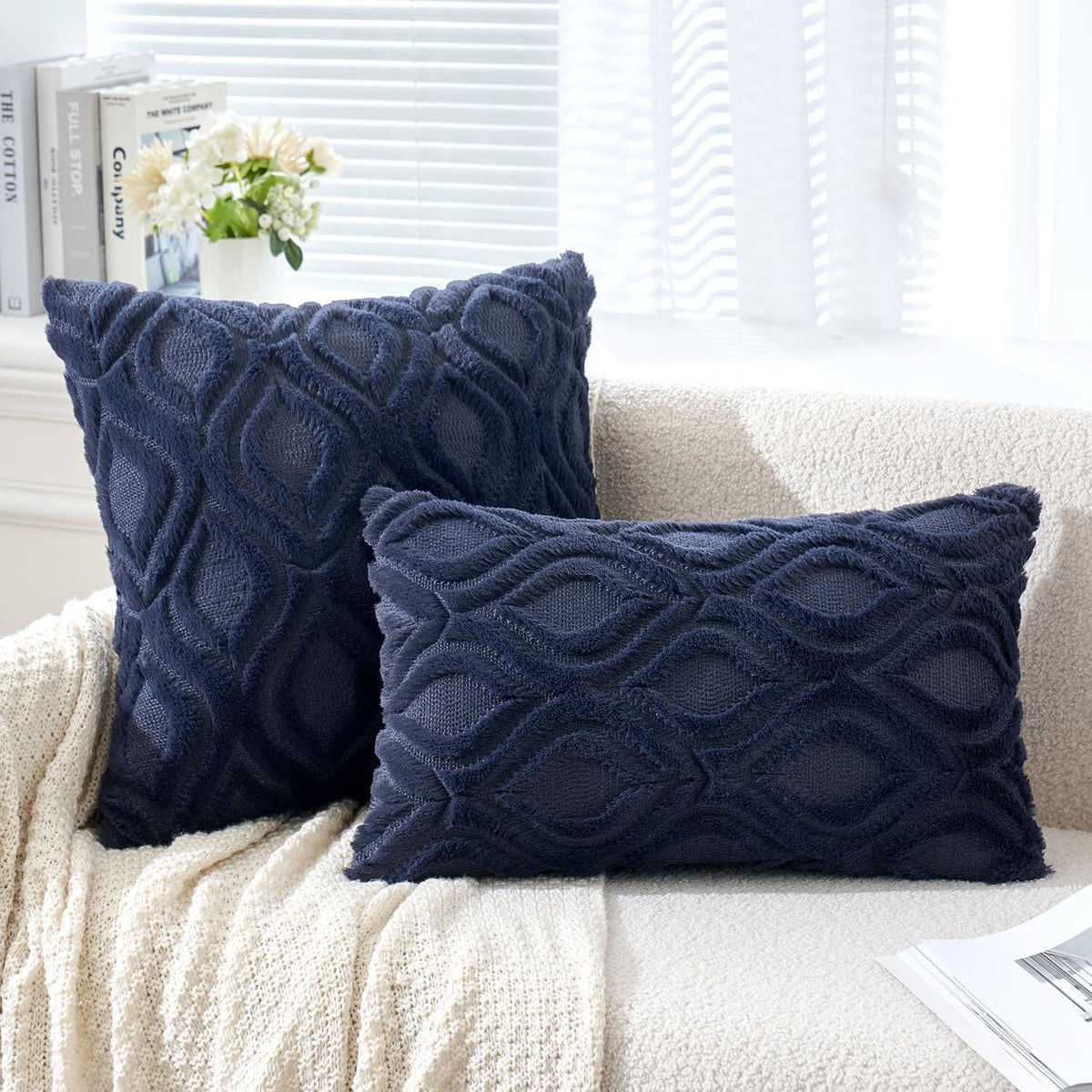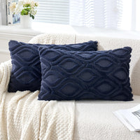 Miulee Navy Blue Throw Pillow Covers 12X20 Inch, Soft Winter Plush Faux Wool Couch Pillow Covers Set Of 2 Decorative Farmhouse Boho Throw Pillows For Sofa Living Room Bed