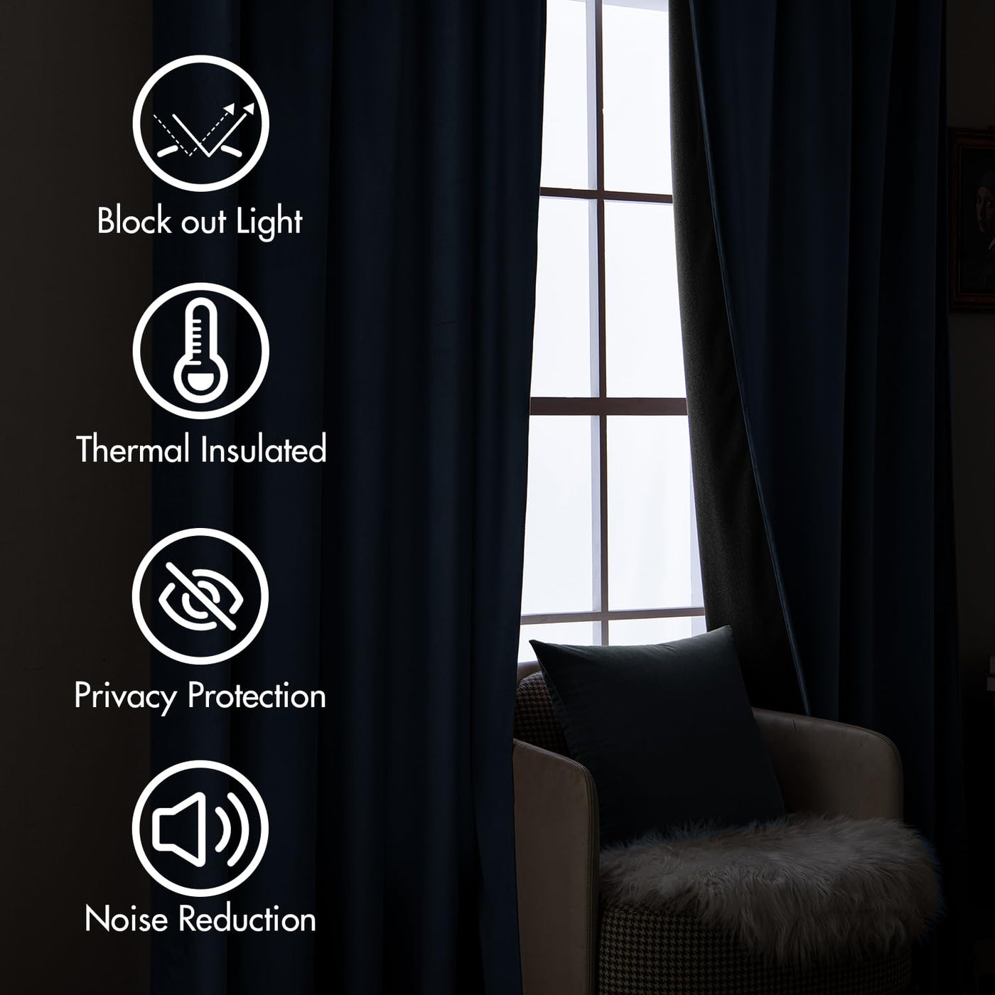 Q: Do these curtains provide effective blackout and insulation?A: Yes, these curtains are crafted from thick velvet material that blocks approximately 80% of sunlight, making them effective for room darkening. They also help to keep heat out in the summer and retain warmth in the winter, contributing to energy savings.