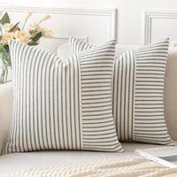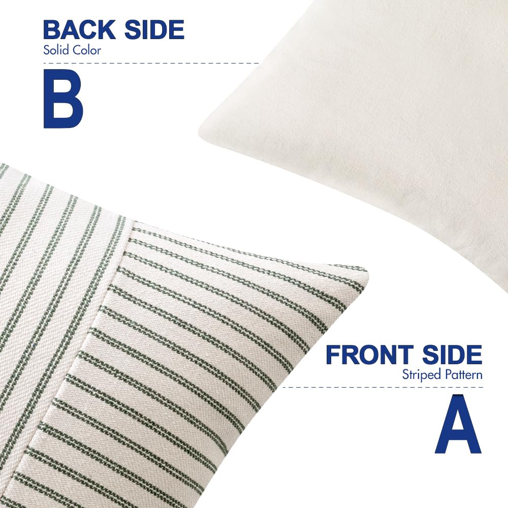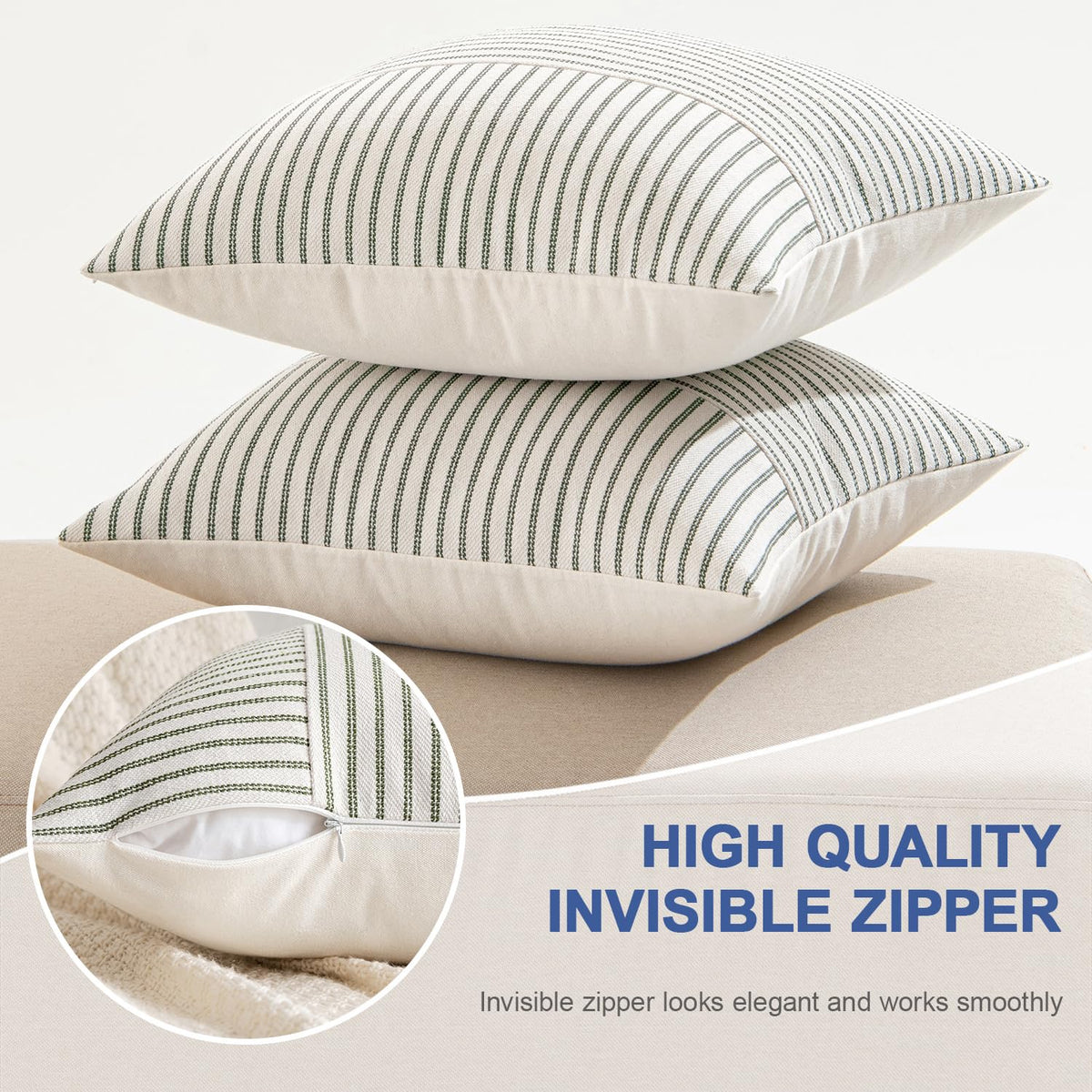 Miulee Olive Green And Beige Patchwork Farmhouse Pillow Covers 16X16 Inch, Pack Of 2 Striped Linen Spring Decorative Modern Accent Pillow Cases For Sofa Couch Bedroom