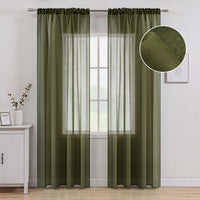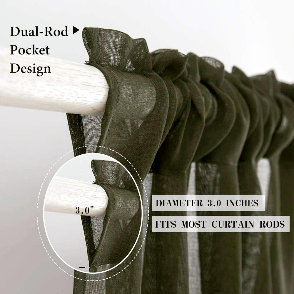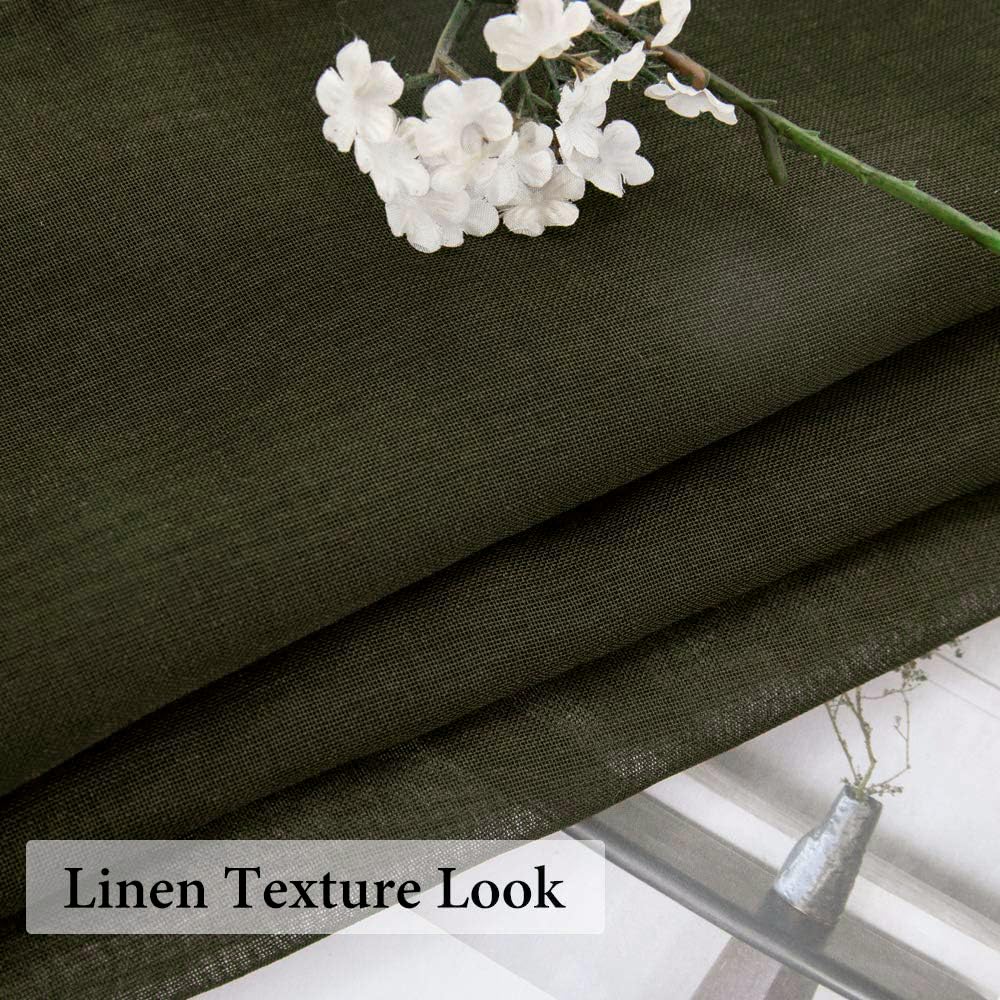 Miulee Olive Green Linen Textured Sheer Curtains For Bedroom Living Room, Semi Transparent Farmhouse Window Treatment Dark Green Drapes With Rod Pocket 2 Panels W 54 X L 72 Inches Long