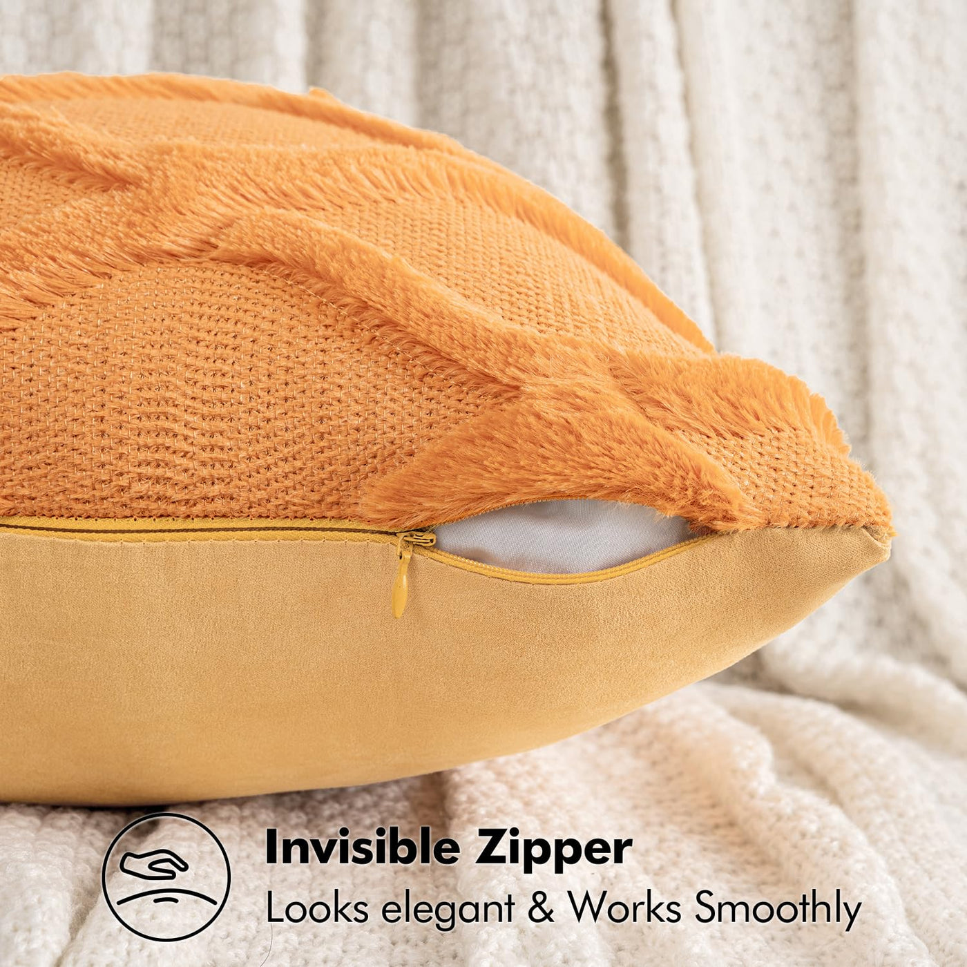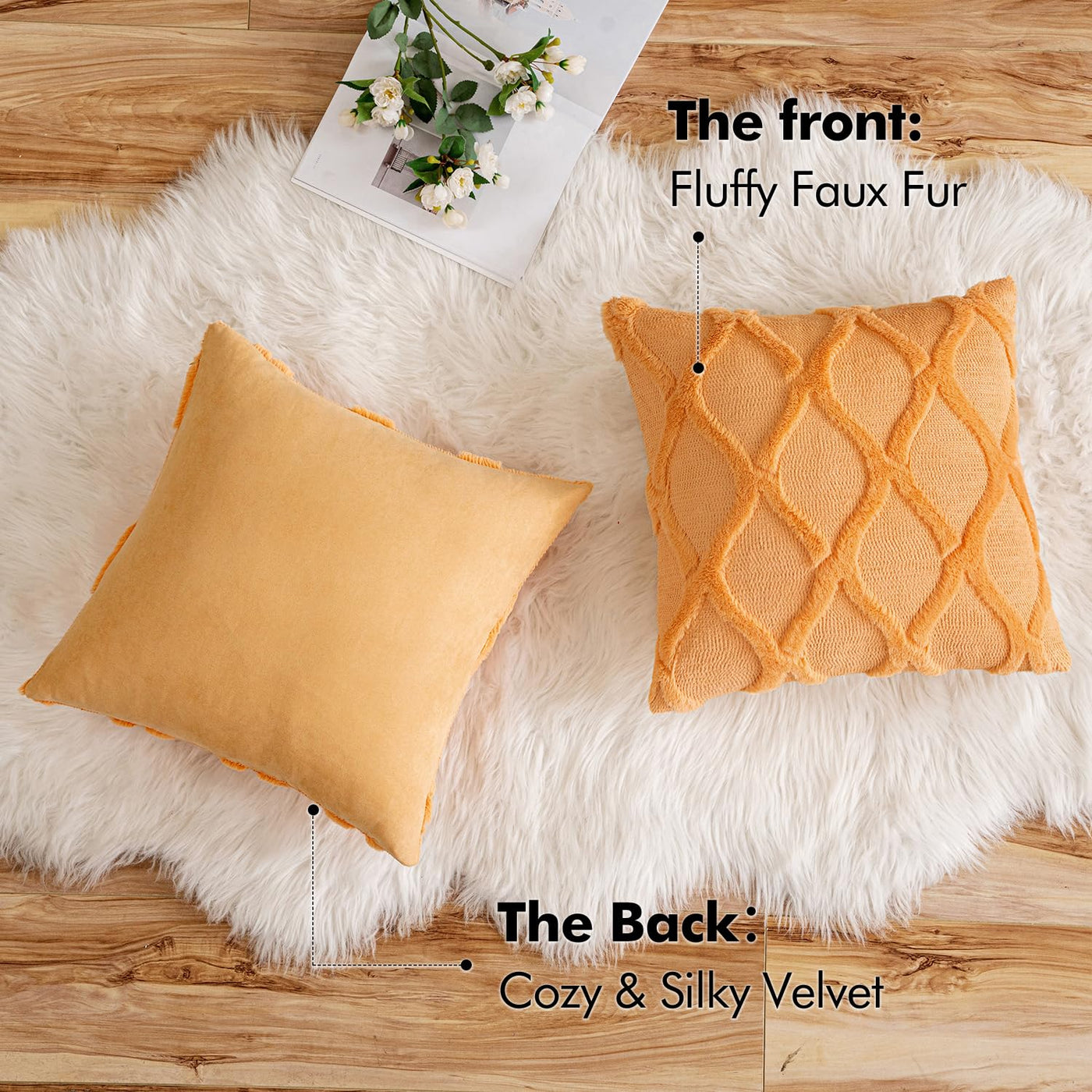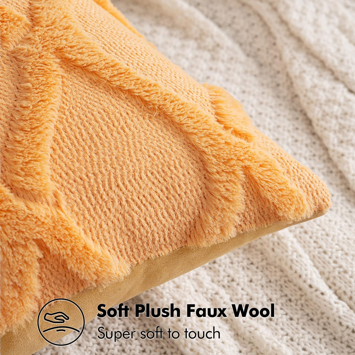 Miulee Orange Decorative Throw Pillow Covers 20X20 Inch Set Of 2, Soft Winter Plush Faux Wool Couch Pillow Covers Farmhouse Throw Pillows For Couch Bed Sofa Living Room