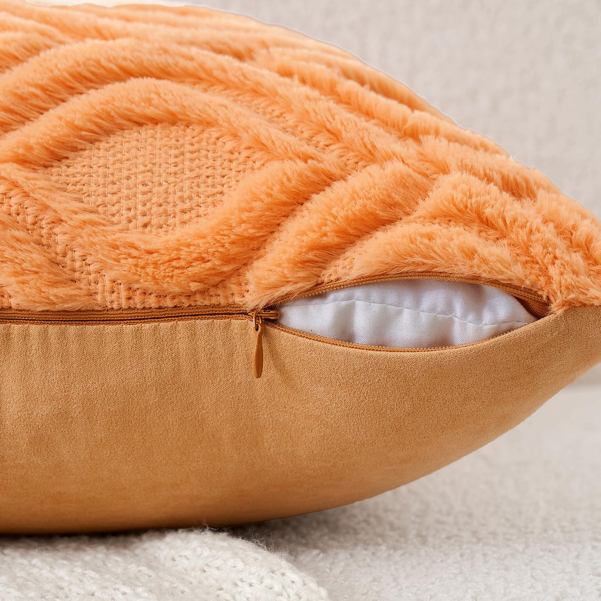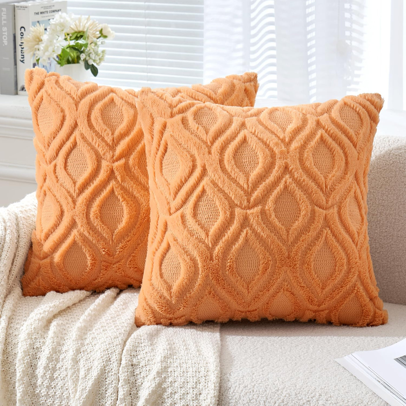 Miulee Orange Throw Pillow Covers 16X16 Inch, Soft Winter Plush Faux Wool Couch Pillow Covers Set Of 2 Decorative Farmhouse Boho Throw Pillows For Sofa Living Room Bed