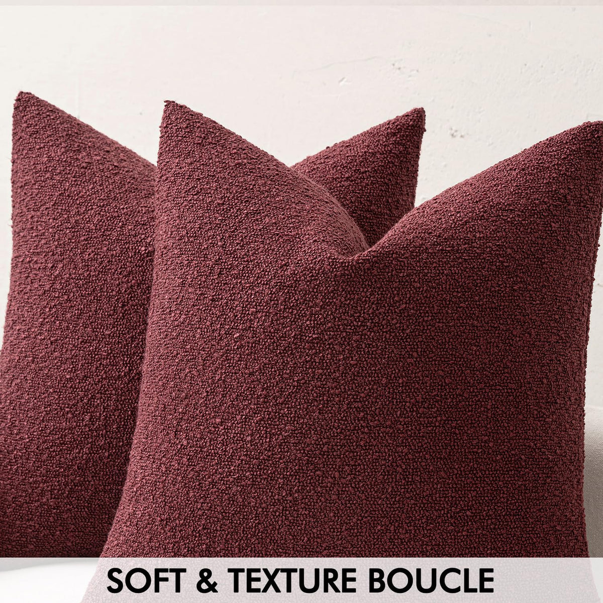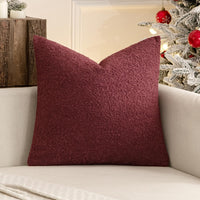 Miulee Pack Of 1 Christmas Burgundy Red Boucle Throw Pillow Cover 24X24 Inch Decorative Couch Pillow Cover Textured Accent Solid Pillow Case Soft For Cushion Chair Sofa Bedroom Livingroom Home Decor