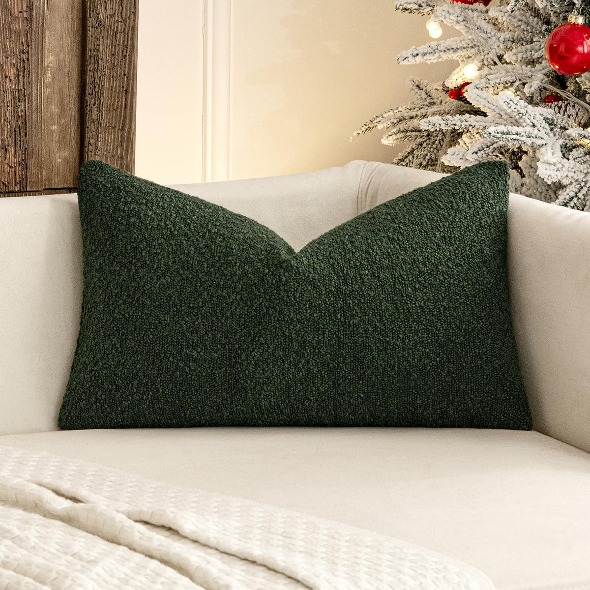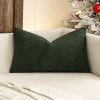 Miulee Pack Of 1 Christmas Dark Green Boucle Throw Pillow Cover 12X20 Inch Decorative Couch Pillow Cover Textured Accent Solid Pillow Case Soft For Cushion Chair Sofa Bedroom Livingroom Home Decor