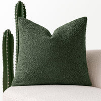 Miulee Pack Of 1 Christmas Dark Green Boucle Throw Pillow Cover 24X24 Inch Decorative Couch Pillow Cover Textured Accent Solid P