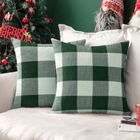 Miulee Pack Of 2 Christmas Classic Retro Checkers Plaids Polyester Linen Soft Solid Green And White Decorative Throw Pillow Cove
