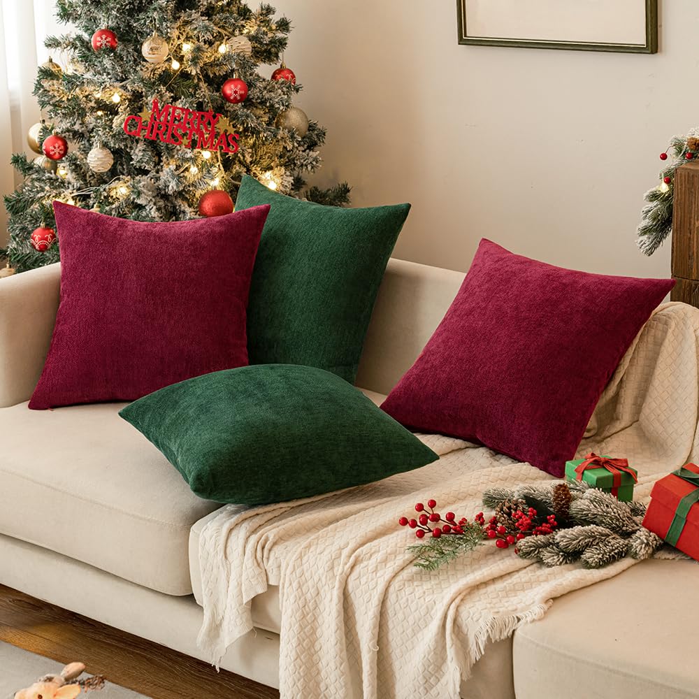 Miulee Pack Of 2 Christmas Dark Green Decorative Pillow Covers 12X20 Inch Soft Chenille Couch Throw Pillows Farmhouse Cushion Covers For Home Decor Sofa Bedroom Living Room