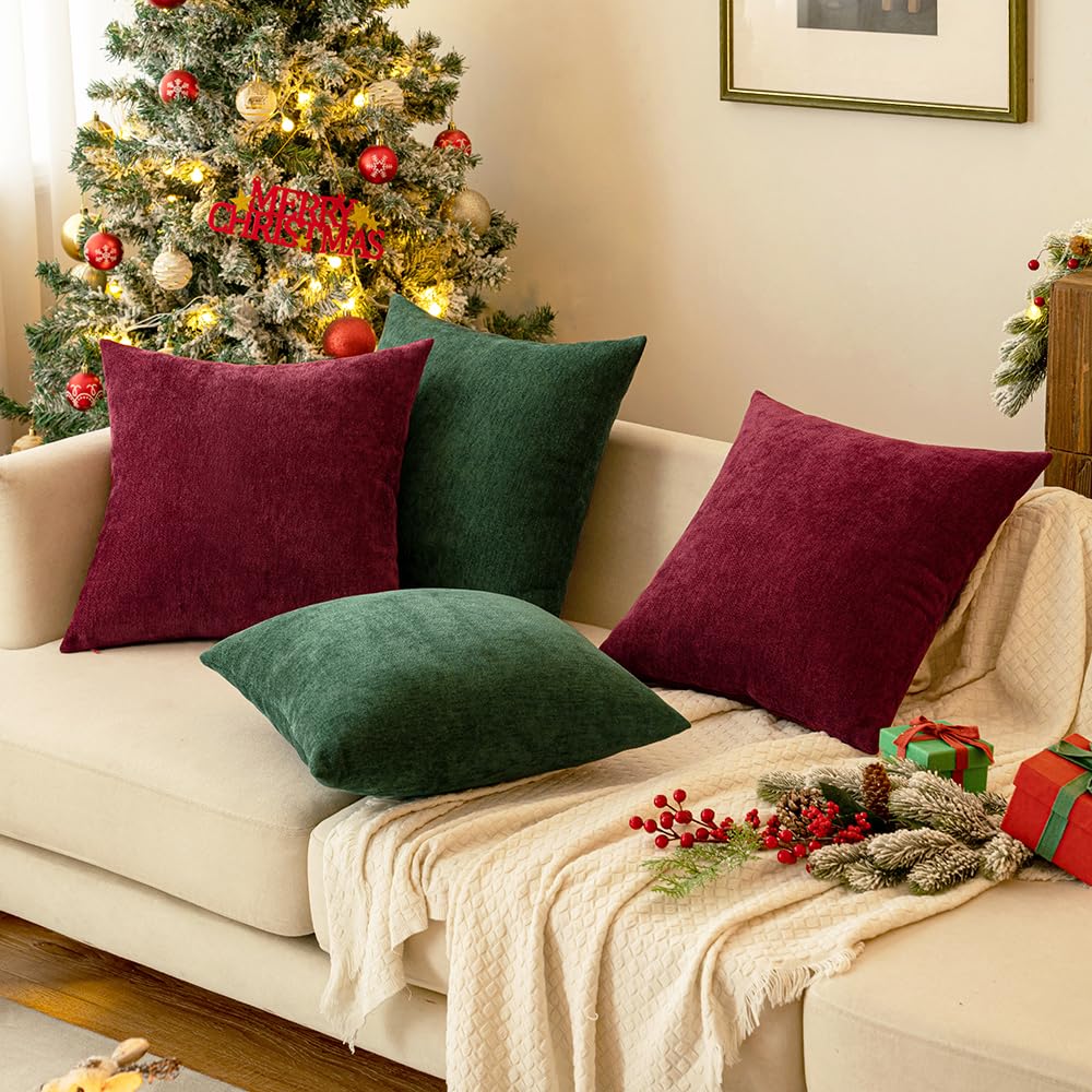 Miulee Pack Of 2 Christmas Dark Green Decorative Pillow Covers 18X18 Inch Soft Chenille Couch Throw Pillows Farmhouse Cushion Covers For Home Decor Sofa Bedroom Living Room