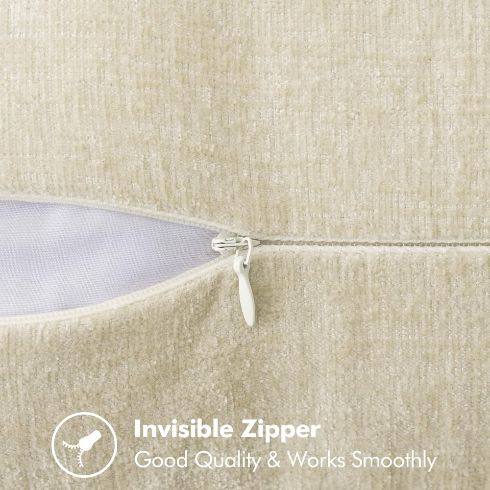 couch throw pillow covers 18x18 inch Cream White farmhouse decorative pack of 2 throw pillows stitched edge soft cozy chenille solid color dyed sofa bed livingroom miulee spring
