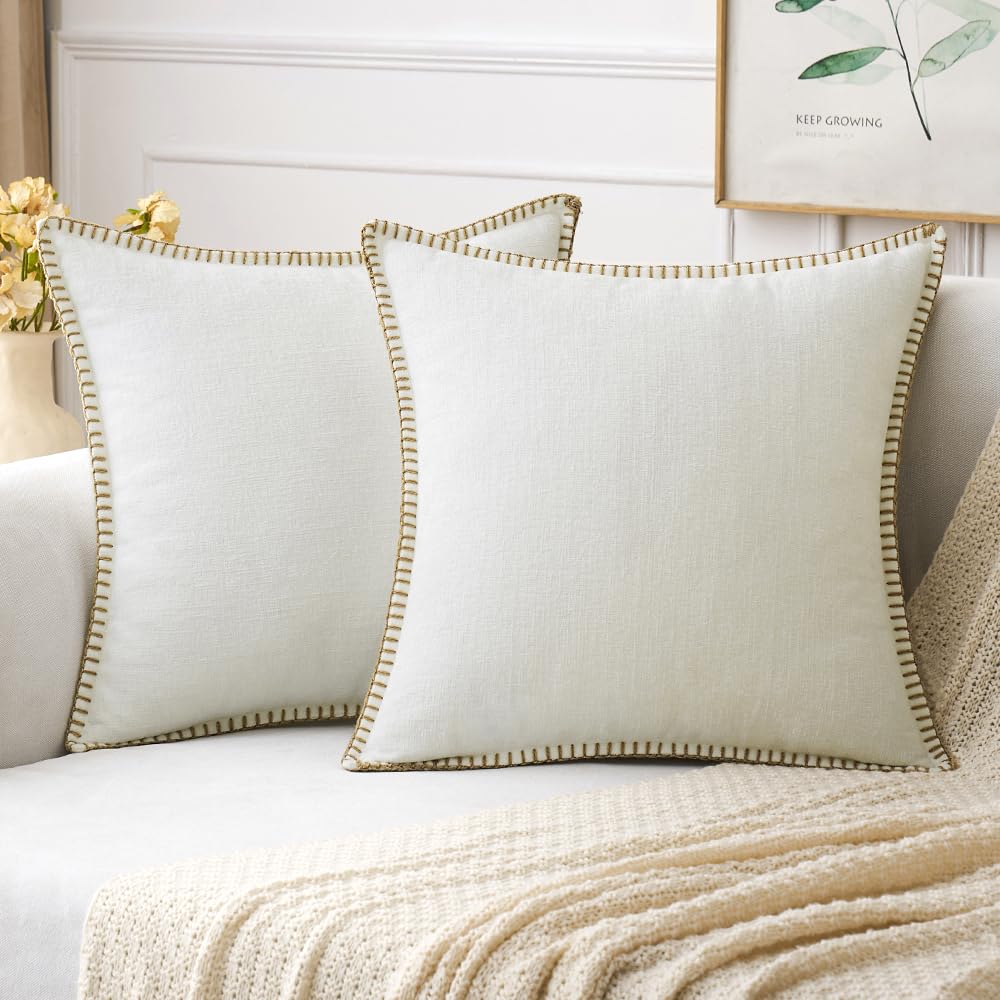 couch throw pillow covers 24x24 inch pure white farmhouse decorative pack of 2 throw pillows stitched edge soft cozy chenille solid color dyed sofa bed livingroom miulee spring