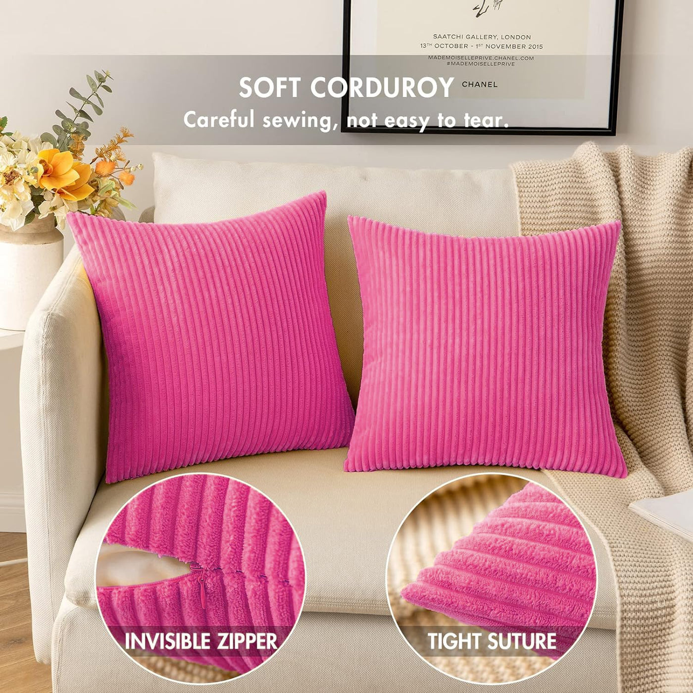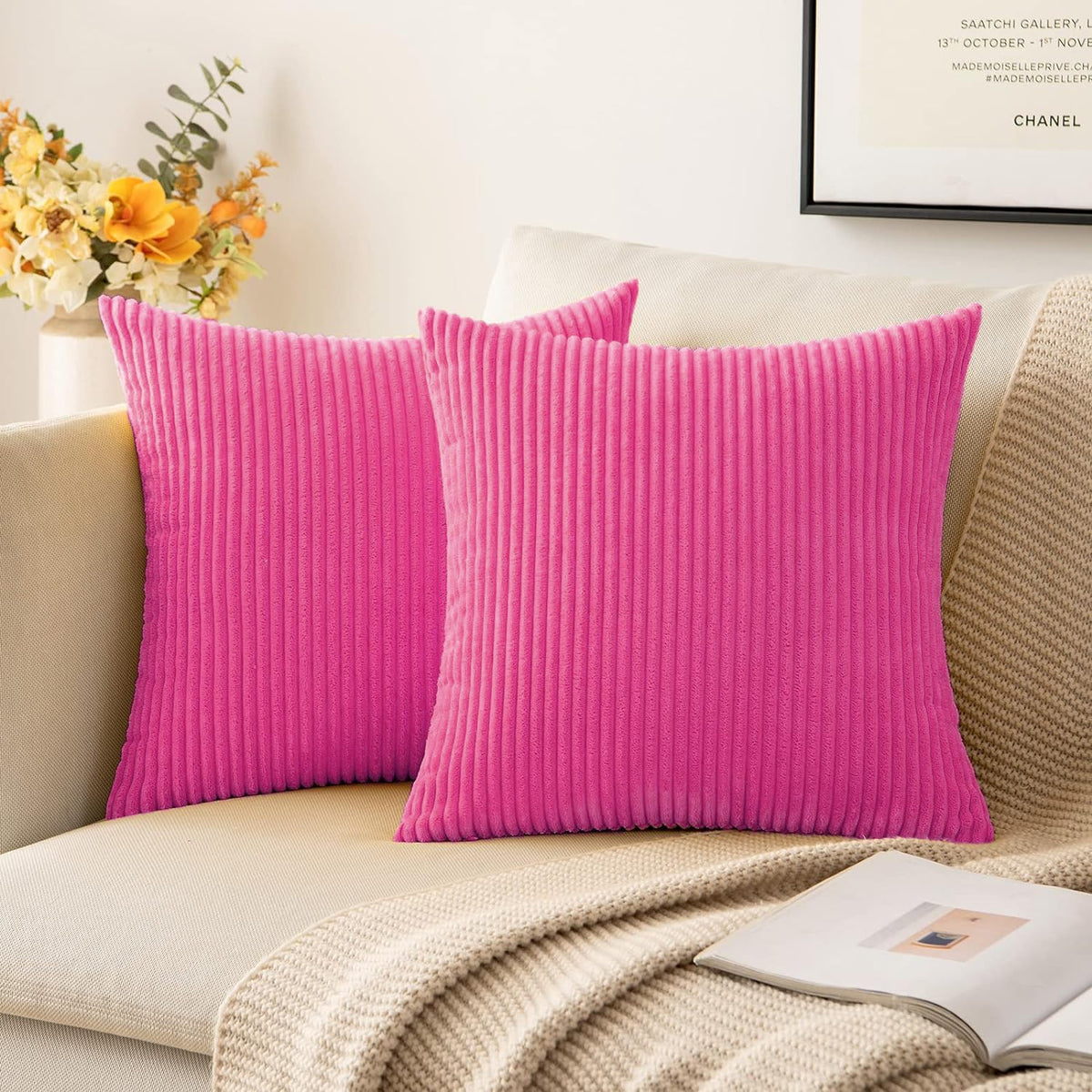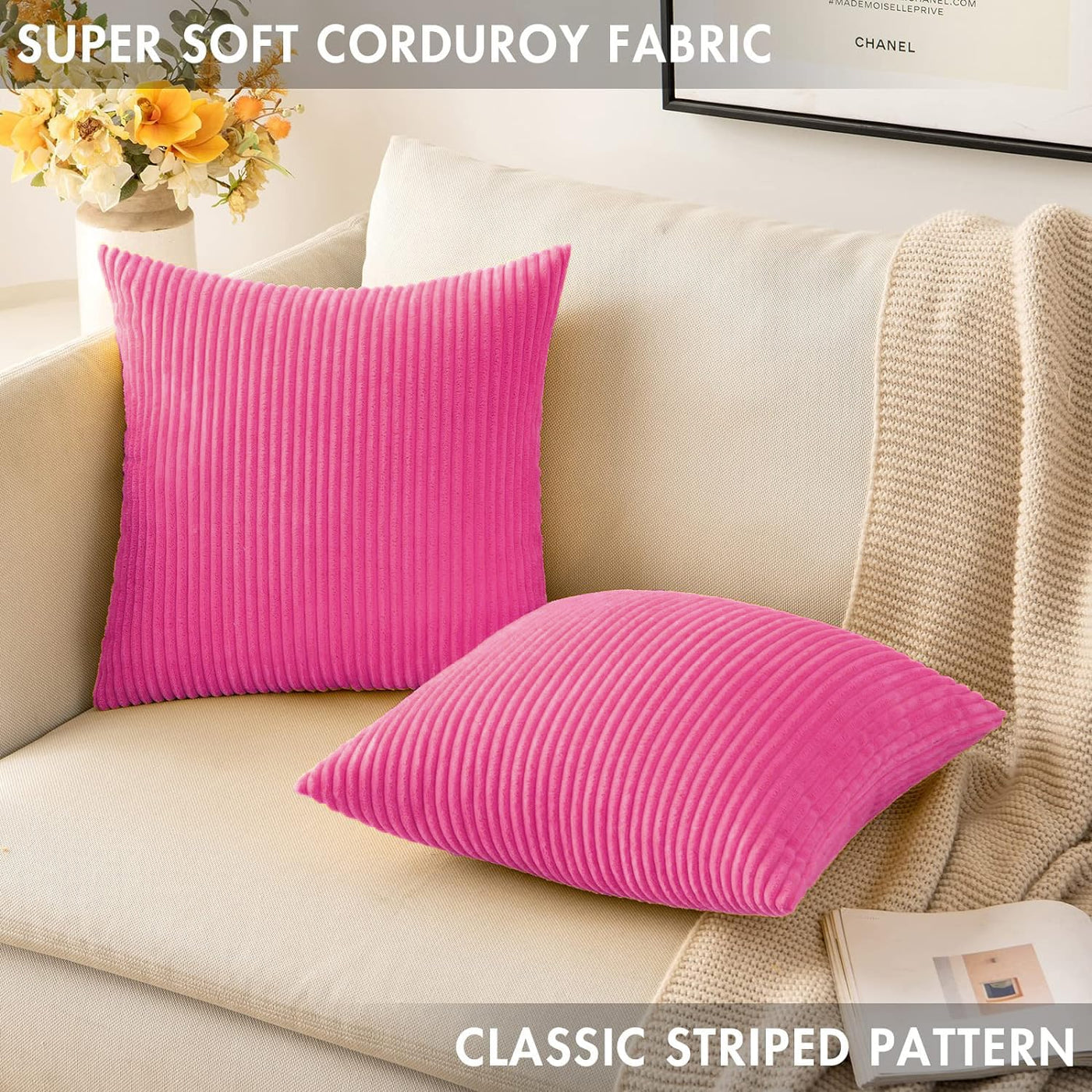 Miulee Pack Of 2 Corduroy Soft Soild Decorative Square Throw Pillow Covers Cushion Cases Pillowcases For Sofa Bedroom Car 18 X 18 Inch 45 X 45 Cm Hot Pink