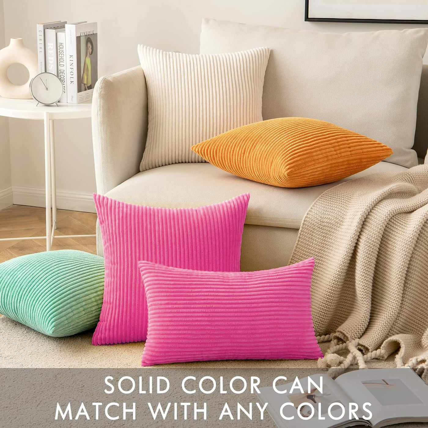 SIZE: Package includes 2 pieces of 18 x 18 inch couch pillow covers WITHOUT INSERT. Please allow 1-2cm deviation because of manual cutting and sewing.
