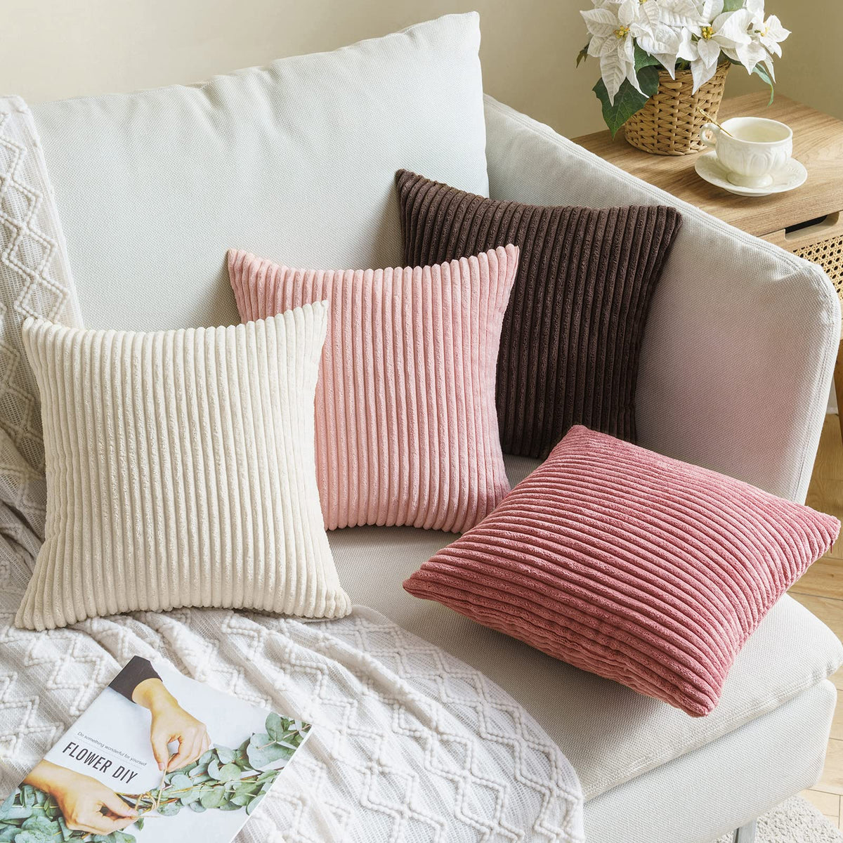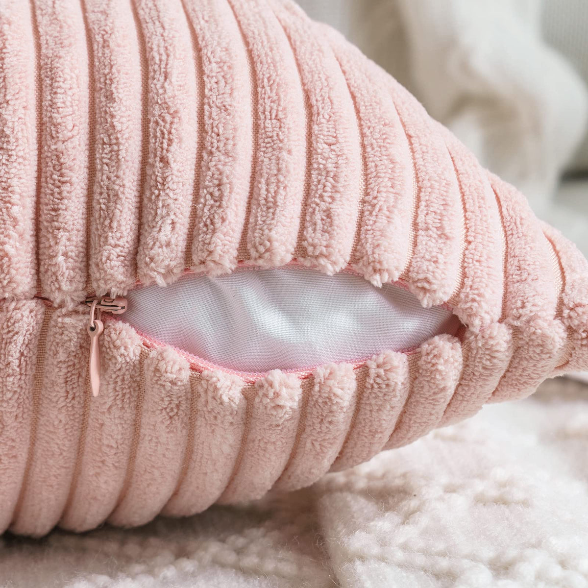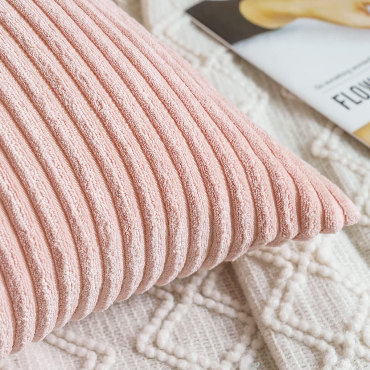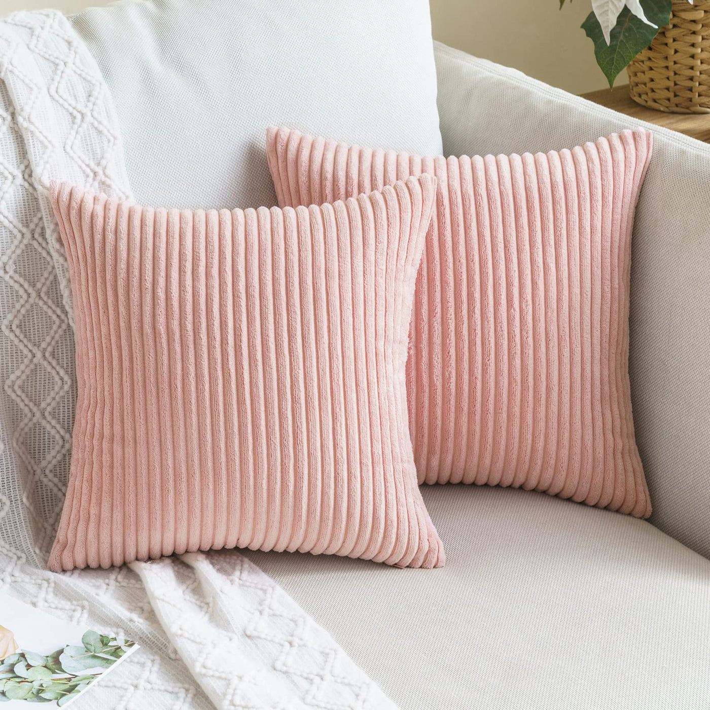 Miulee Pack Of 2 Corduroy Soft Solid Decorative Square Throw Pillow Covers Cushion Cases Spring Pillowcases For Couch Sofa Bedroom Car 12 X 12 Inch 30 X 30 Cm, Pink