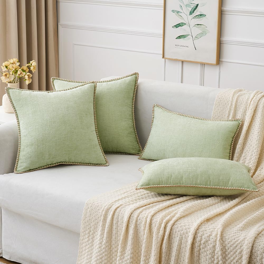 couch throw pillow covers 12x20 inch light green farmhouse decorative pack of 2 throw pillows stitched edge soft cozy chenille solid color dyed sofa bed livingroom miulee spring
