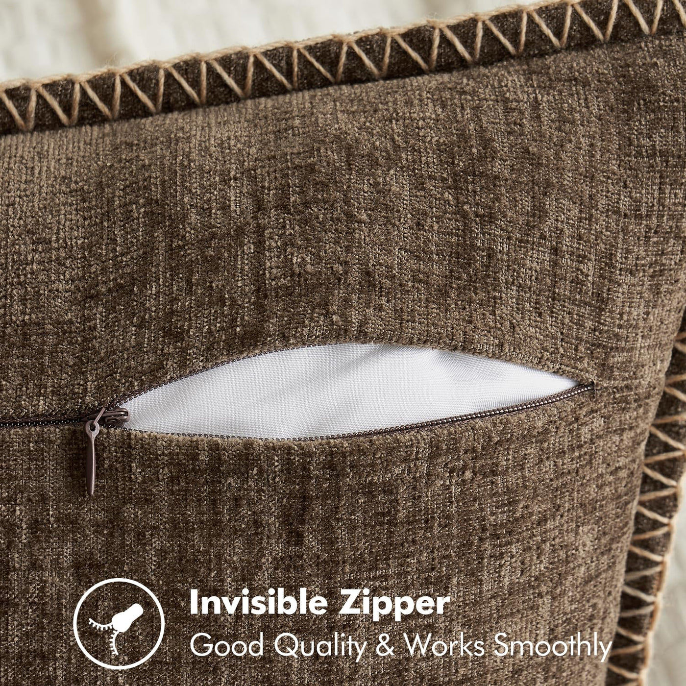couch throw pillow covers 24x24 inch brown farmhouse decorative pack of 2 throw pillows stitched edge soft cozy chenille solid color dyed sofa bed livingroom miulee spring