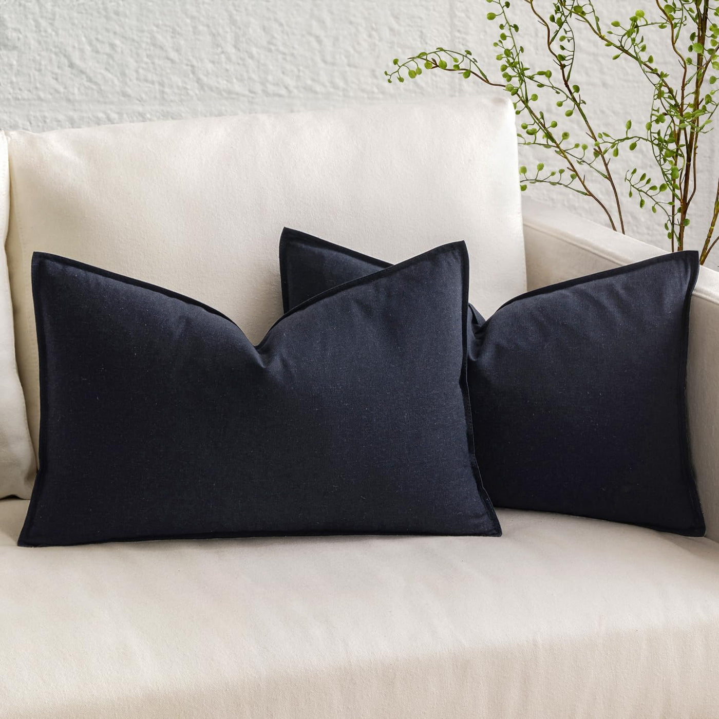 Miulee Pack Of 2 Dark Blue Pillow Covers 12X20 Inch Decorative Couch Throw Pillow Covers Spring Linen Cushion Covers Set Modern Farmhouse Home Decor For Sofa Living Room Bed