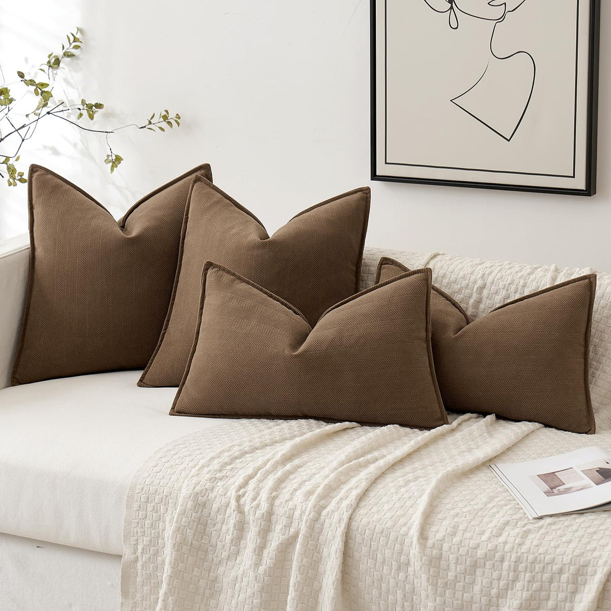 Miulee Pack Of 2 Dark Brwon Decorative Pillow Covers 24X24 Inch Soft Chenille Luxurious Couch Throw Pillows Farmhouse Cushion Covers Euro Shams With Elegant Design For Sofa Bed Living Room Home Decor