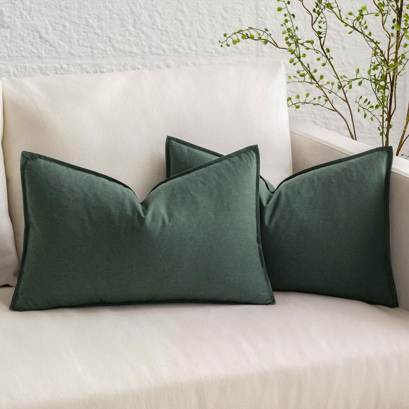 Miulee Pack Of 2 Dark Green Pillow Covers 12X20 Inch Decorative Couch Throw Pillow Covers Linen Cushion Covers Set Modern Farmhouse Home Decor For Sofa Living Room Bed