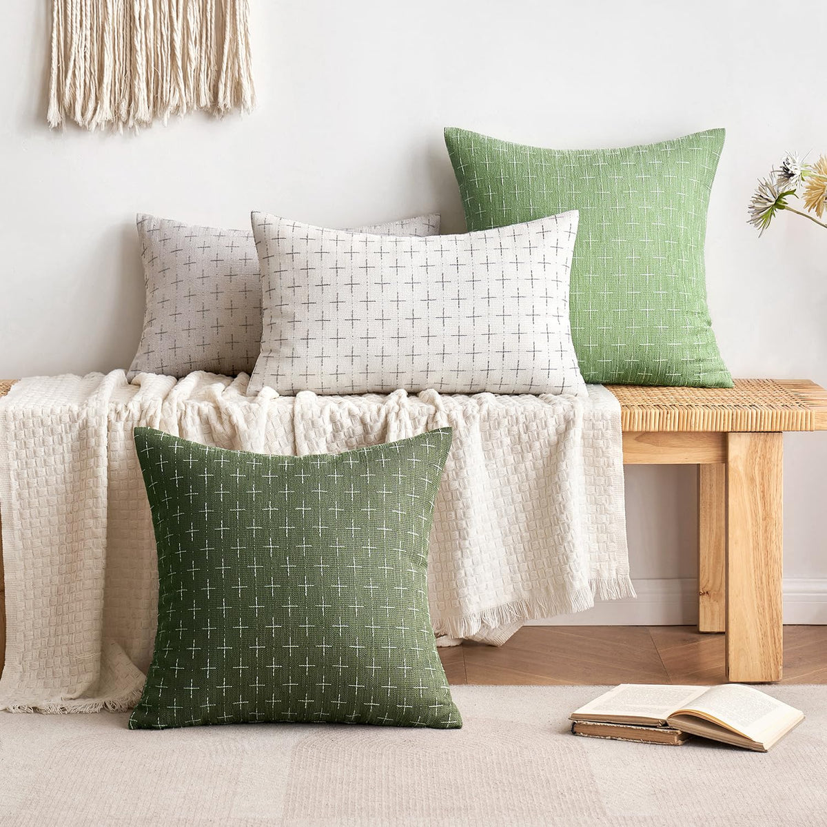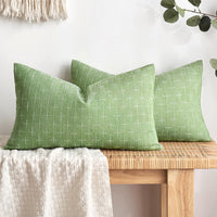 Miulee Pack Of 2 Decorative Burlap Linen Spring Throw Pillow Covers Modern Farmhouse Pillowcase Rustic Woven Textured Cushion Cover For Sofa Couch Bed 12X20 Inch Sage Green