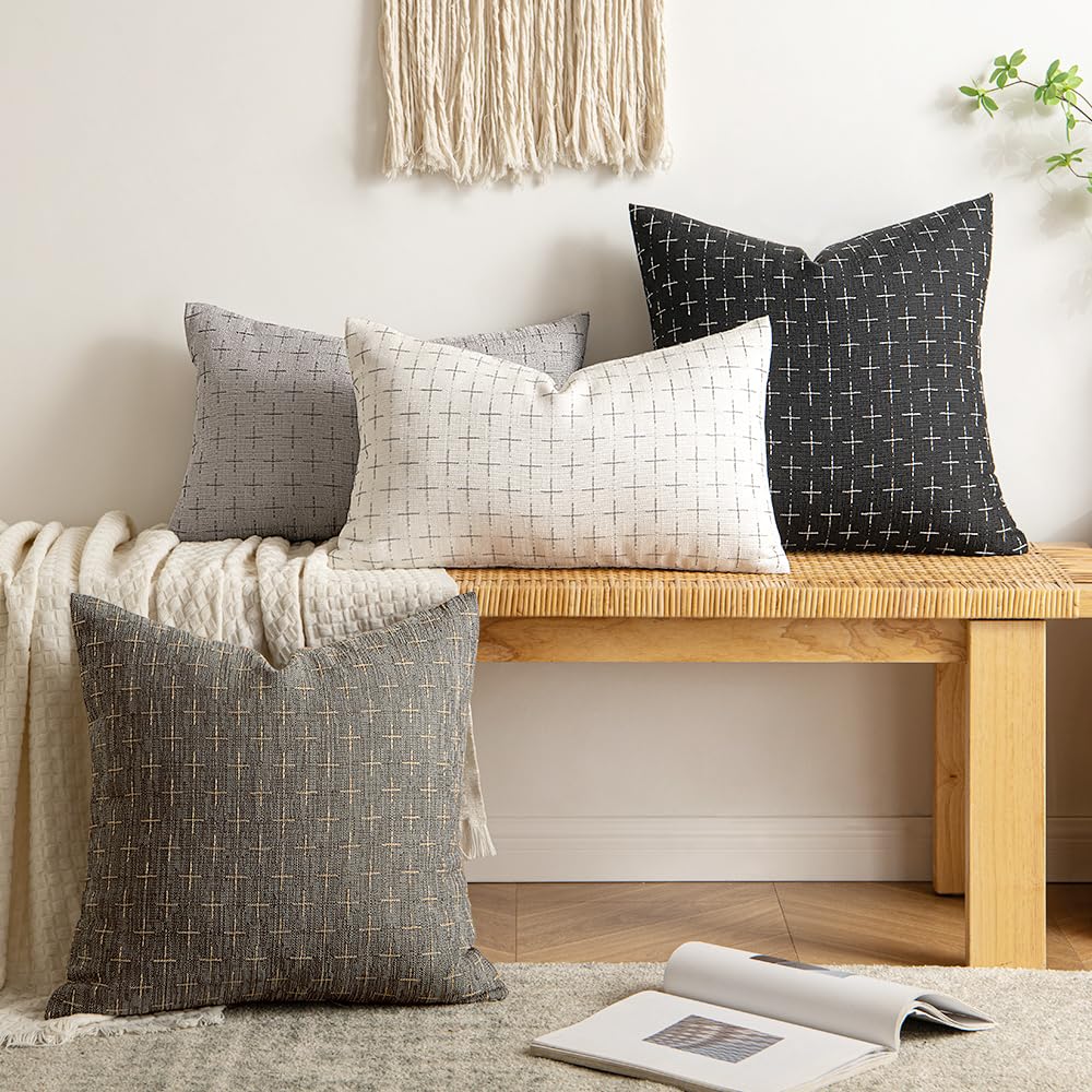 Miulee Pack Of 2 Decorative Burlap Linen Throw Pillow Covers Modern Farmhouse Pillowcase Rustic Woven Textured Cushion Cover For Sofa Couch Bed 12X20 Inch Black