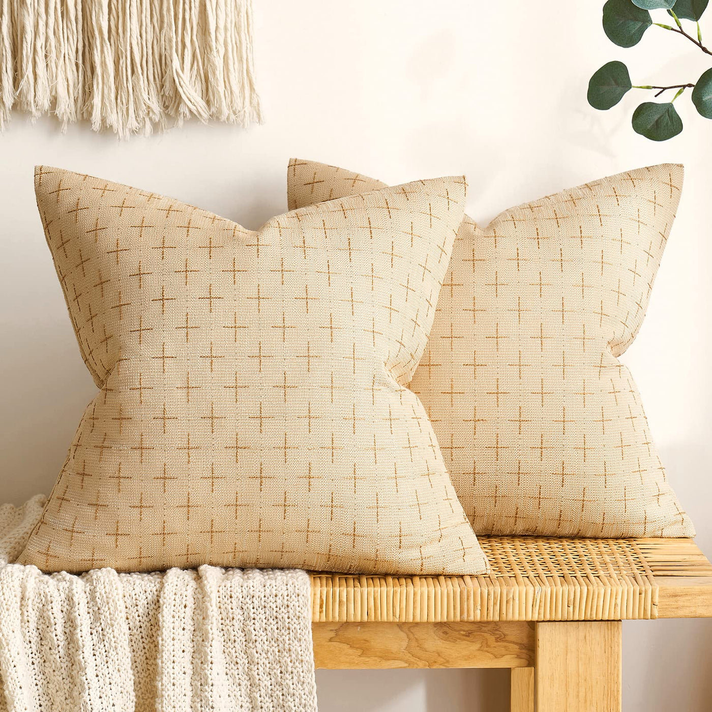 Miulee Pack Of 2 Decorative Burlap Linen Throw Pillow Covers Modern Farmhouse Pillowcase Rustic Woven Textured Cushion Cover For Sofa Couch Bed 24X24 Inch Light Coffee
