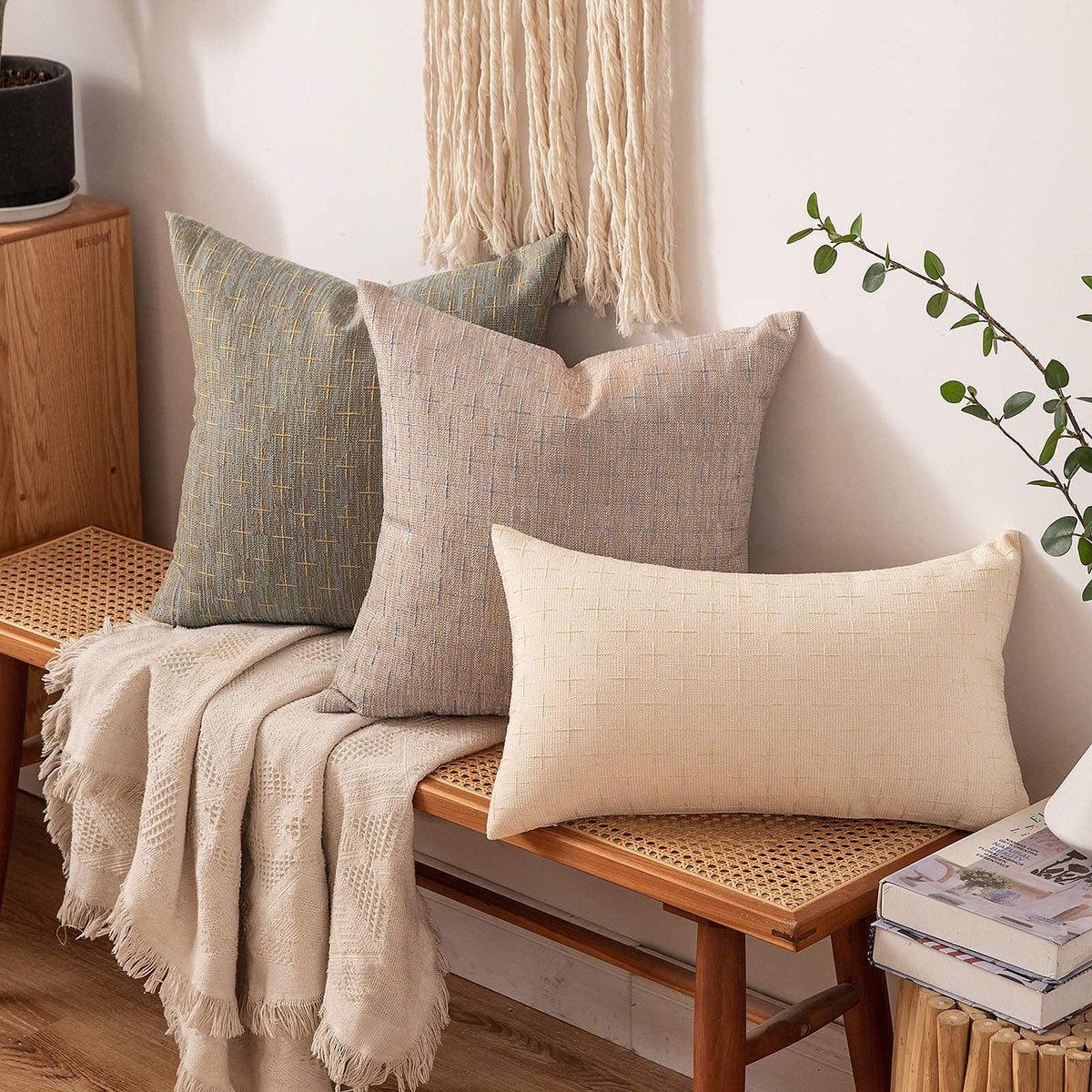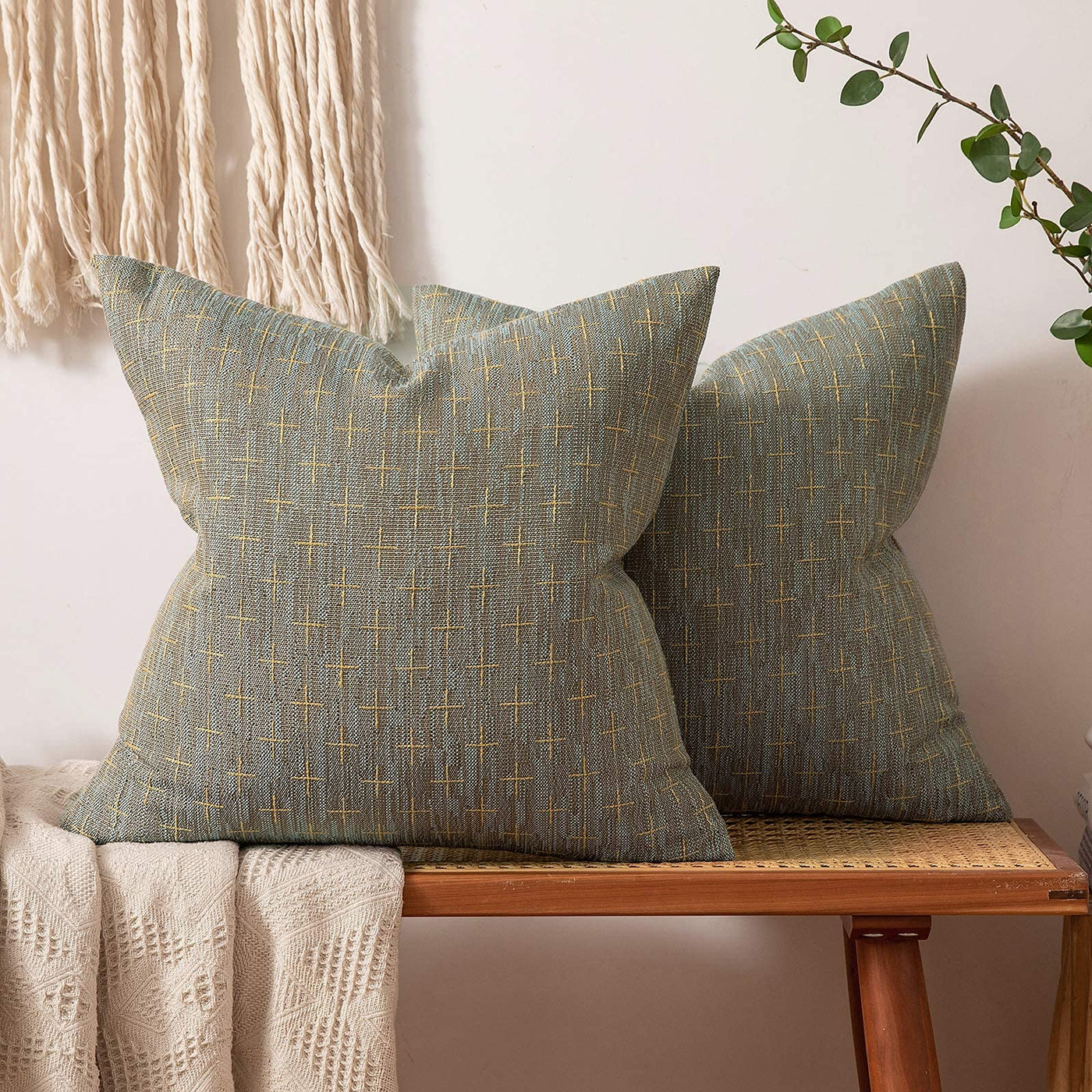 Miulee Pack Of 2 Decorative Burlap Linen Throw Pillow Covers Modern Farmhouse Pillowcases Rustic Woven Textured Cushion Cover For Sofa Couch Bed 16X16 Inch Khaki