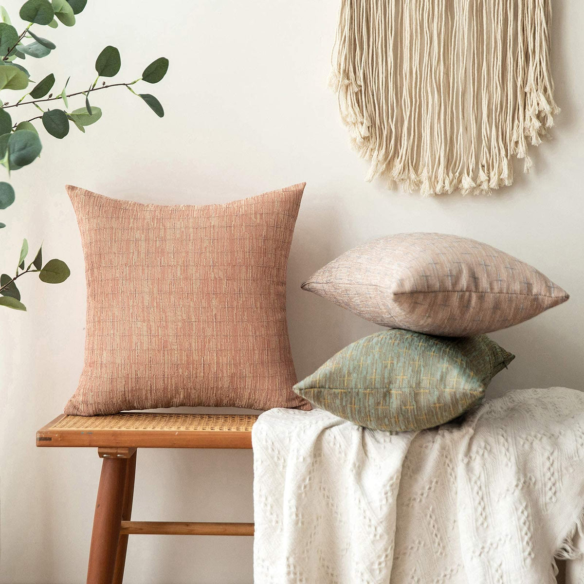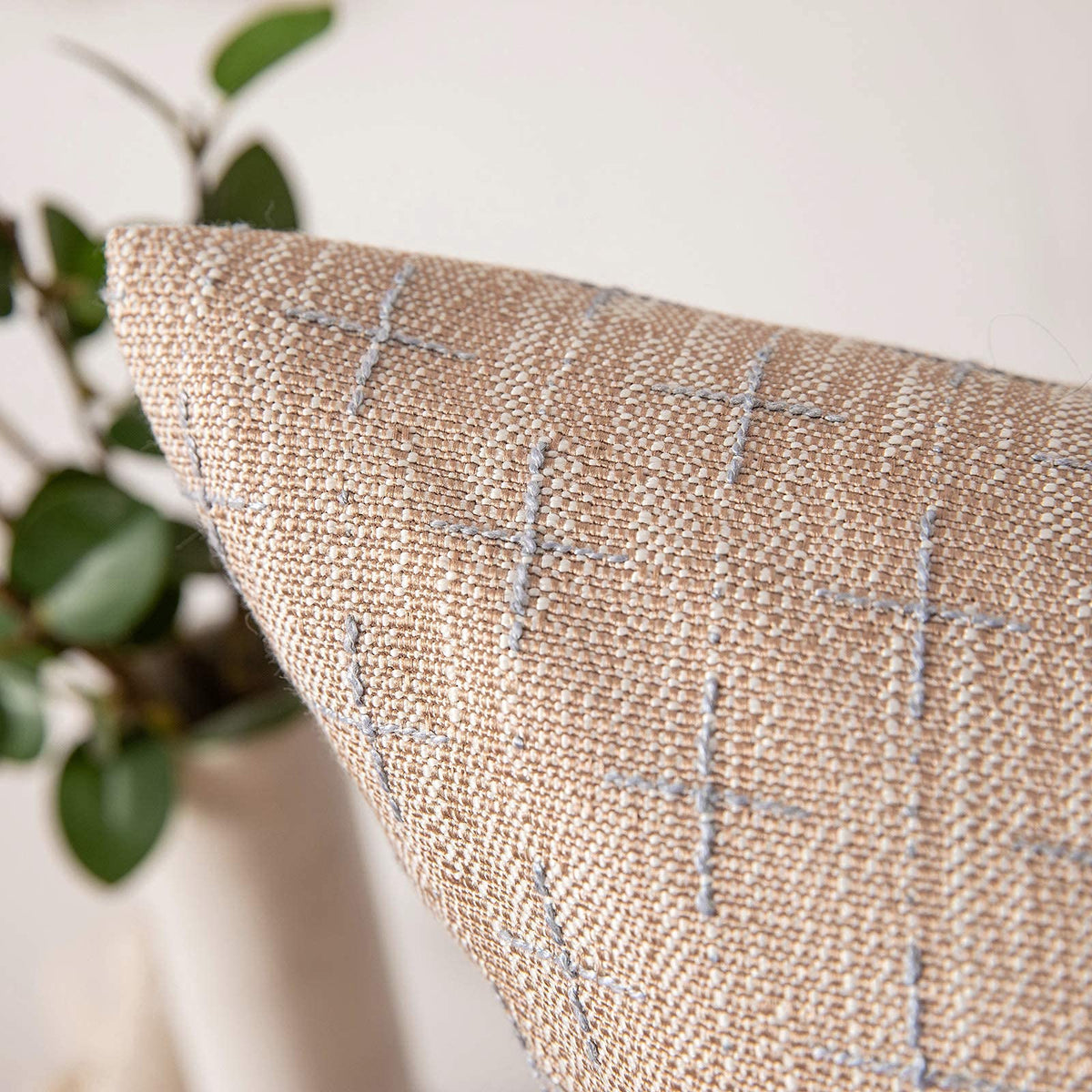 Miulee Pack Of 2 Decorative Burlap Linen Throw Pillow Covers Modern Farmhouse Pillowcases Rustic Woven Textured Cushion Cover For Sofa Couch Bed 24X24 Inch Light Orange