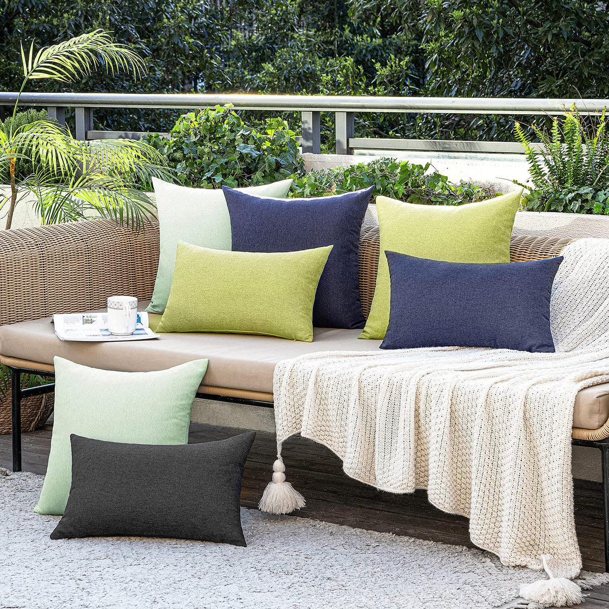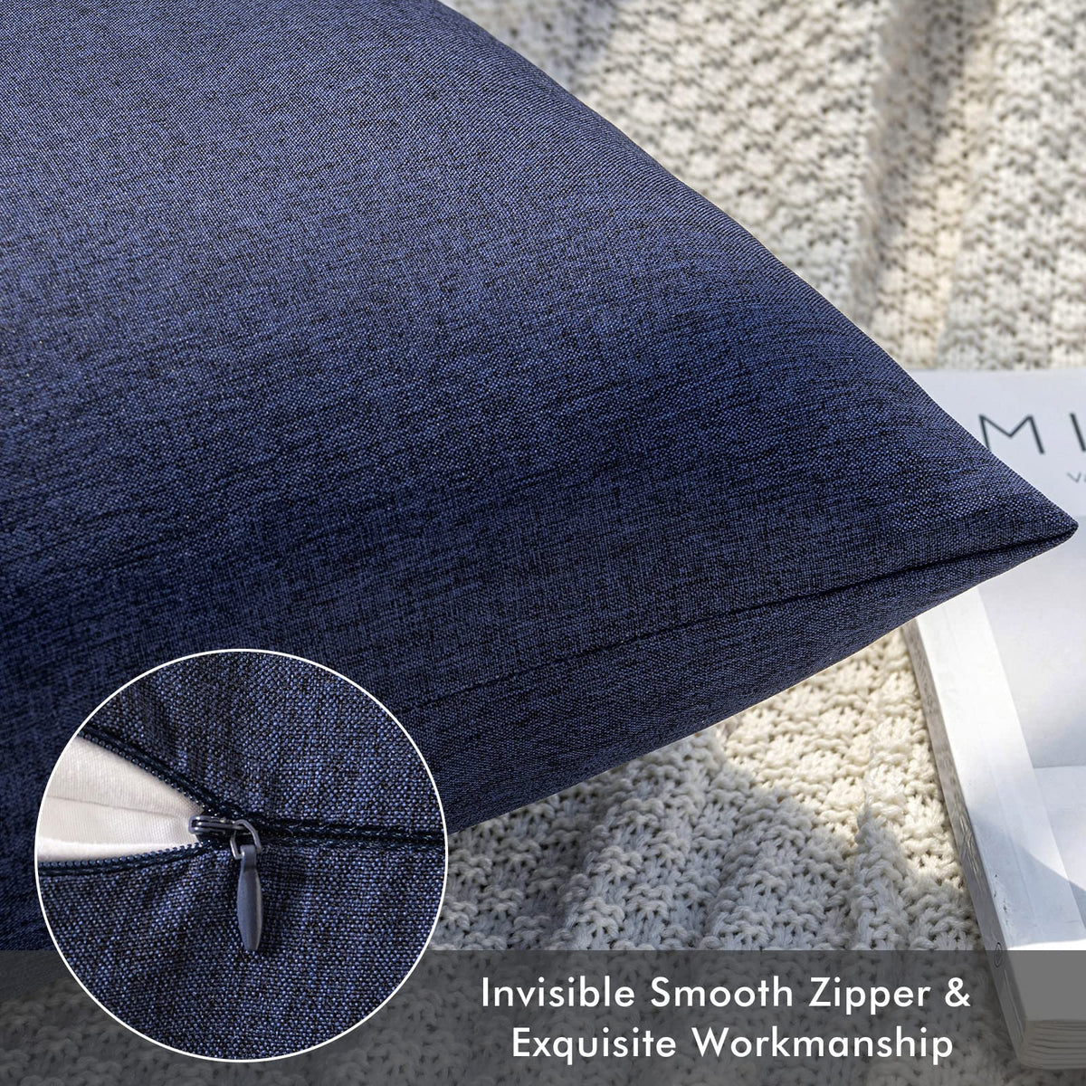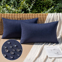 Miulee Pack Of 2 Decorative Outdoor Solid Waterproof Throw Pillow Covers Polyester Linen Garden Farmhouse Cushion Cases For Patio Tent Balcony Couch Sofa 12X20 Inch Navy