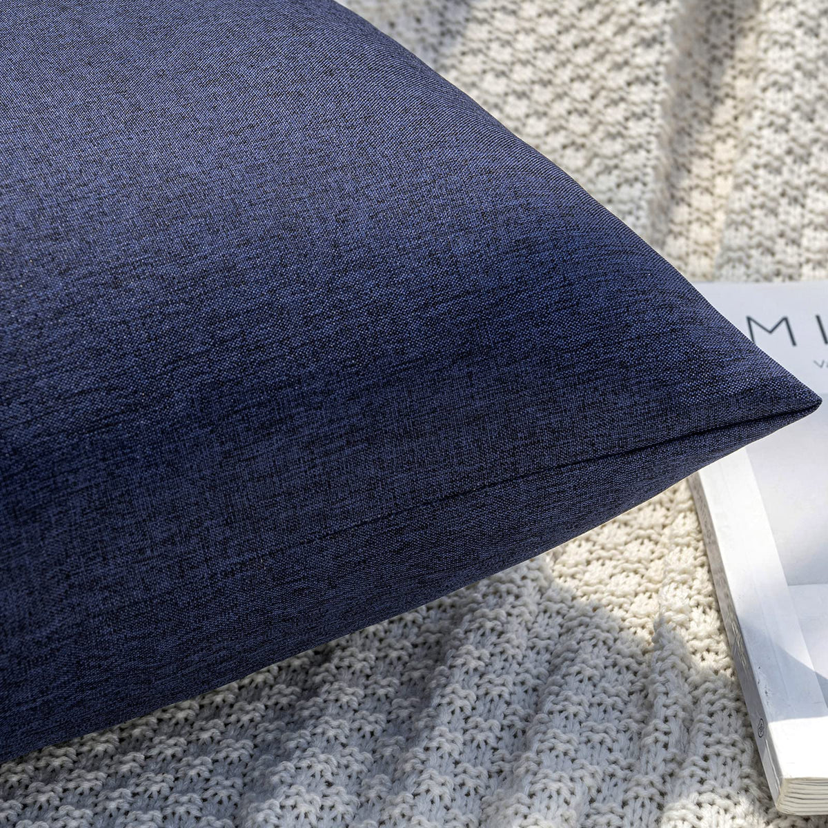 Miulee Pack Of 2 Decorative Outdoor Solid Waterproof Throw Pillow Covers Polyester Linen Garden Farmhouse Cushion Cases For Patio Tent Balcony Couch Sofa 16X16 Inch Navy