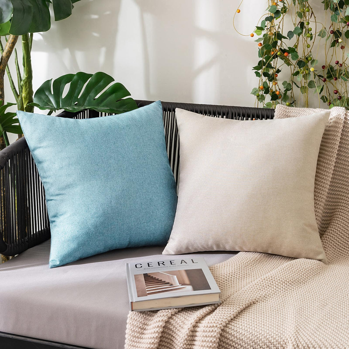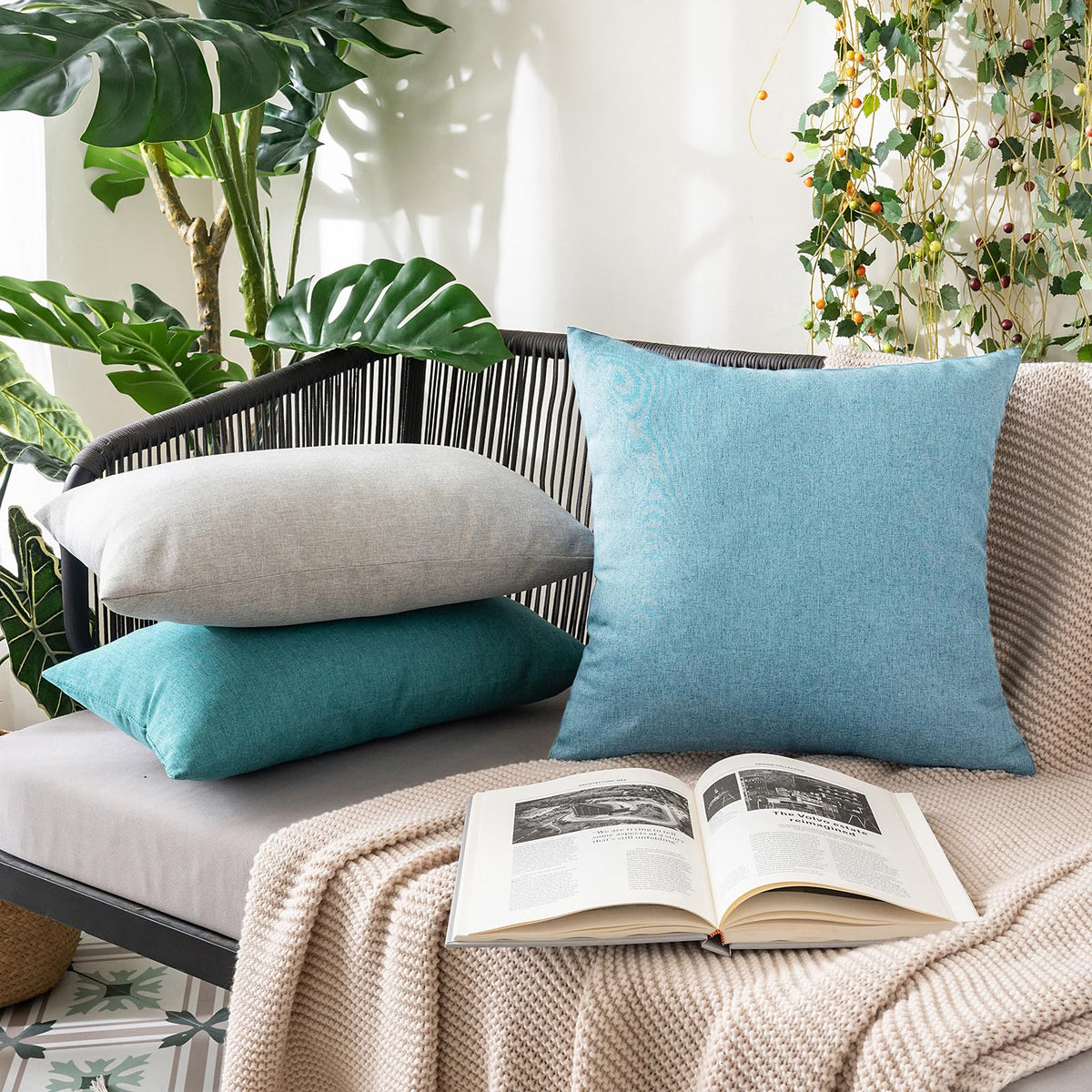 Miulee Pack Of 2 Decorative Outdoor Solid Waterproof Throw Pillow Covers Polyester Linen Garden Farmhouse Cushion Cases For Patio Tent Balcony Couch Sofa 18X18 Inch Blue Gray