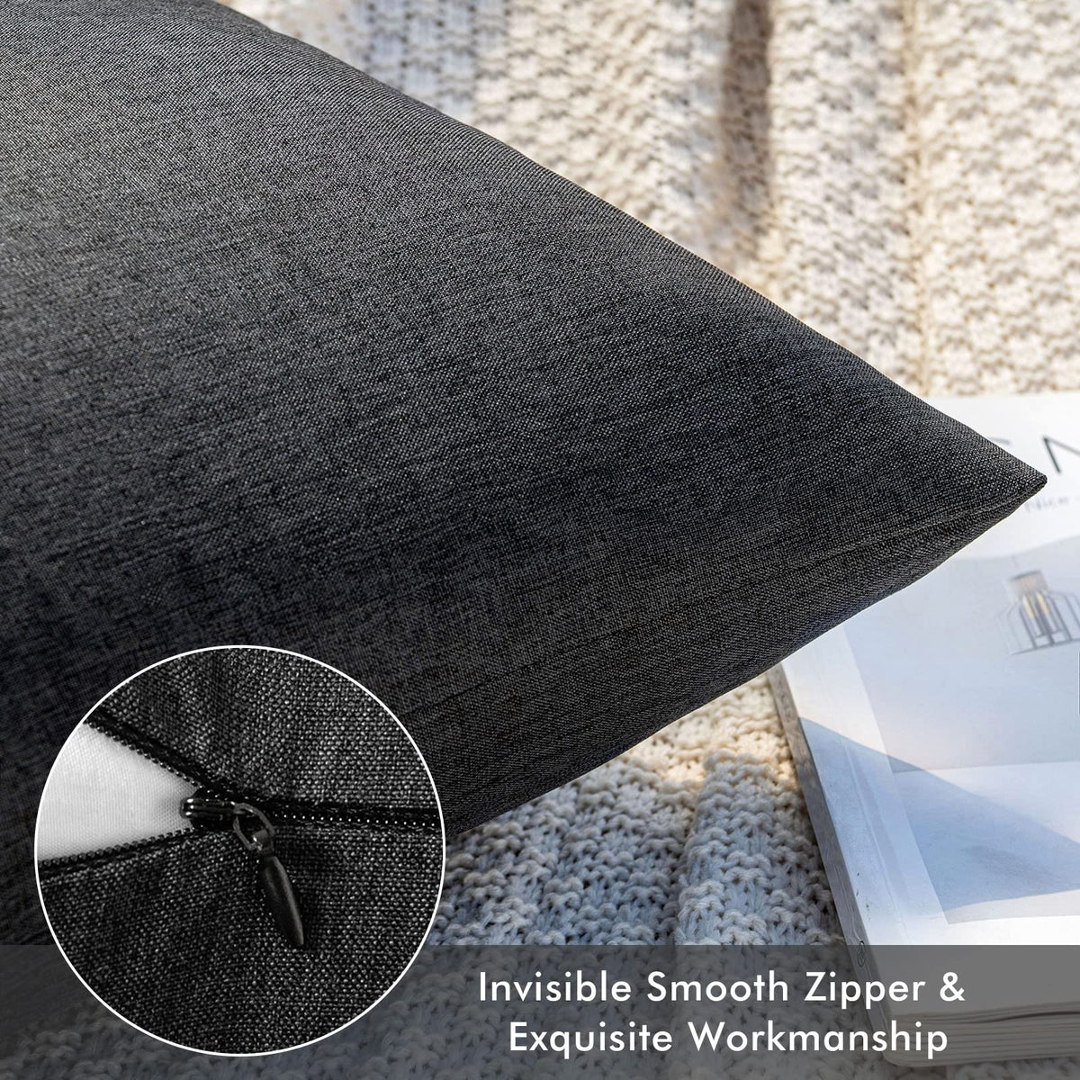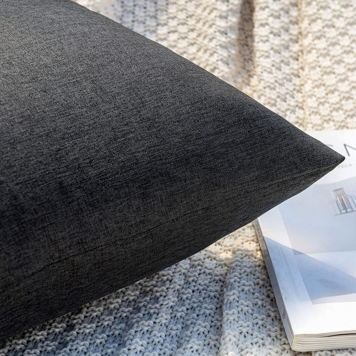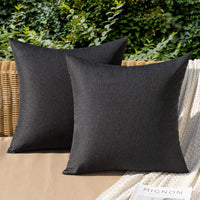 Miulee Pack Of 2 Decorative Outdoor Solid Waterproof Throw Pillow Covers Polyester Linen Garden Farmhouse Cushion Cases For Patio Tent Balcony Couch Sofa 20X20 Inch Black