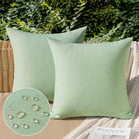Miulee Pack Of 2 Decorative Sage Green Outdoor Solid Waterproof Throw Pillow Covers Polyester Linen Garden Farmhouse Cushion Cas