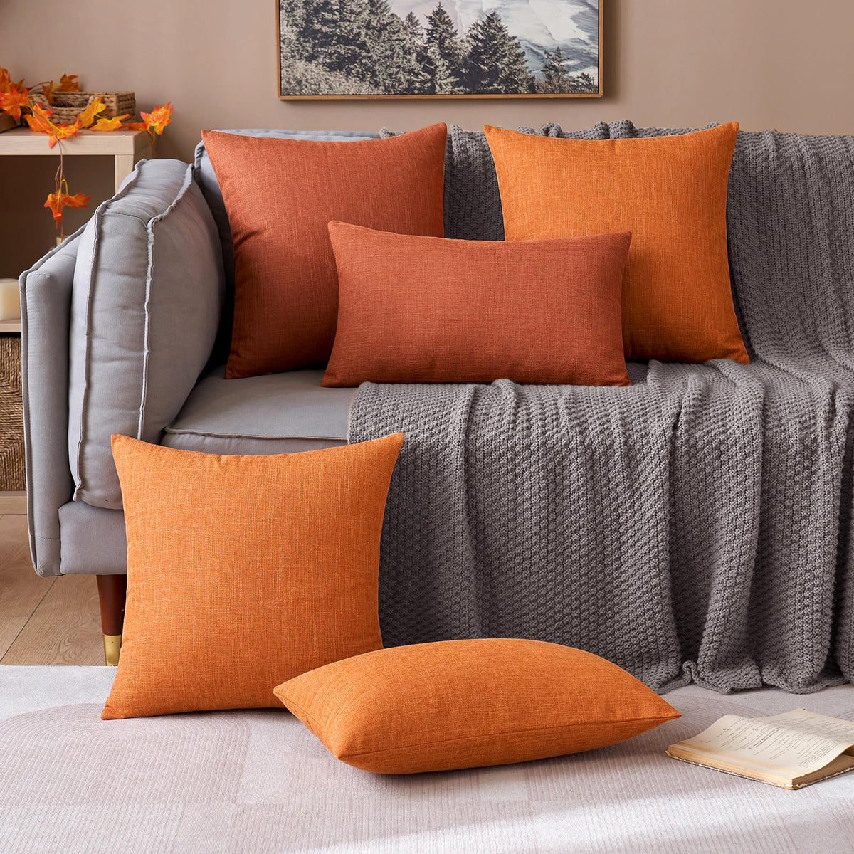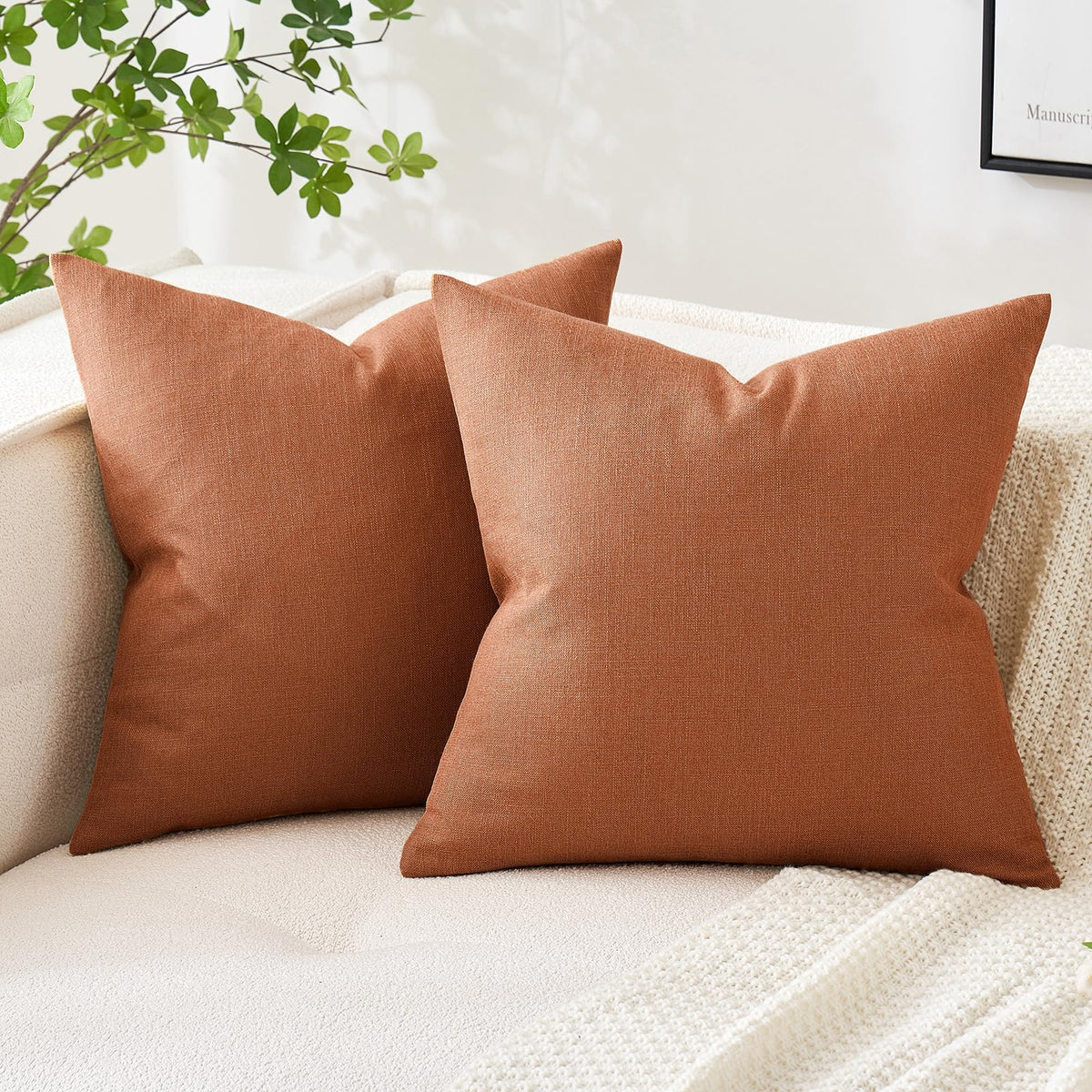 Q: What type of decor do these pillow covers complement best?A: The rust solid pattern of these pillow covers complements a variety of decor styles, especially farmhouse and modern aesthetics, making them ideal for living rooms, bedrooms, and offices.
