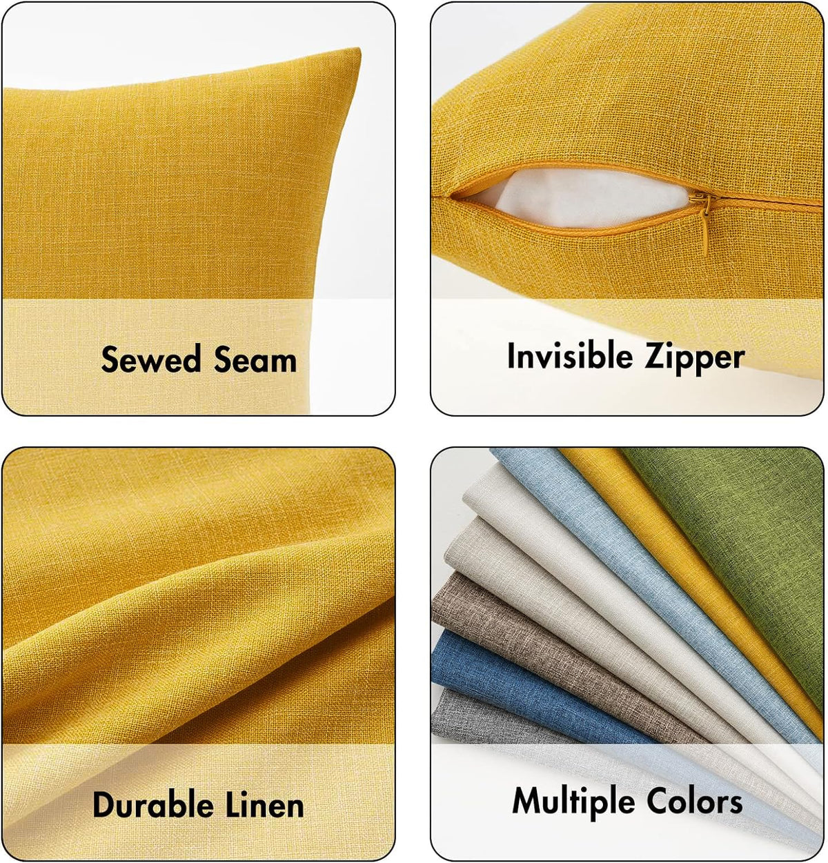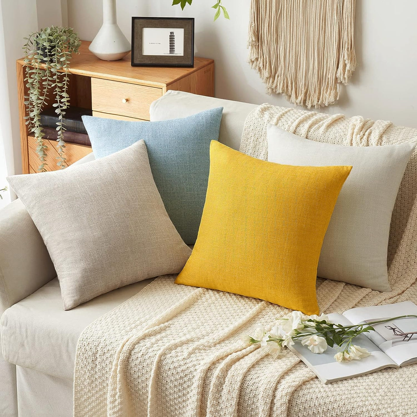 Miulee Pack Of 2 Decorative Throw Pillow Covers Farmhouse Linen Burlap Square Solid Throw Cushion Cover Pillowcase For Sofa Couch 20X20 Inch 50X50 Cm Bright Yellow