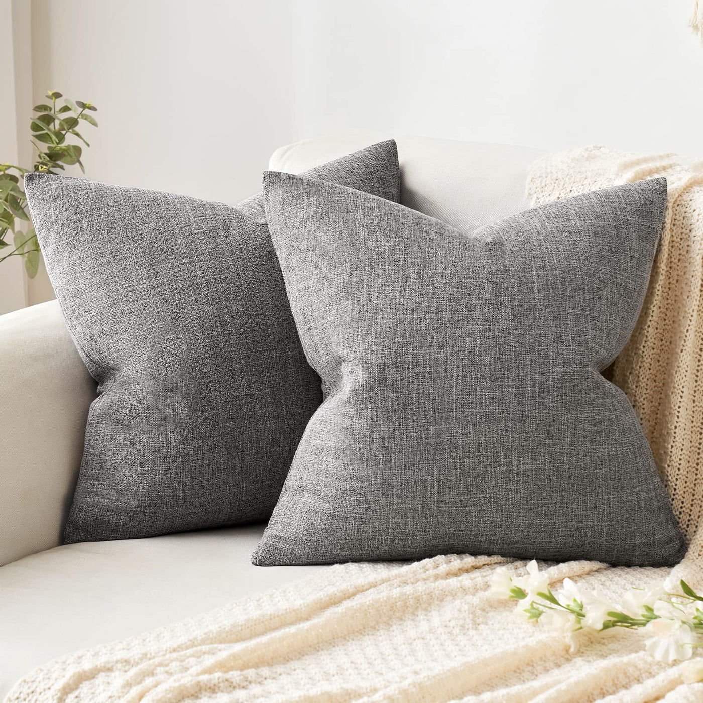 Miulee Pack Of 2 Decorative Throw Pillow Covers Farmhouse Linen Burlap Square Solid Throw Cushion Cover Pillowcase For Sofa Couch 24X24 Inch 60X60 Cm Navy Blue