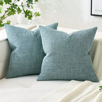 Miulee Pack Of 2 Decorative Throw Pillow Covers Linen Burlap Square Solid Farmhouse Modern Concise Throw Cushion Case Pillowcase For Sofa Car Couch 16X16 Inch Teal