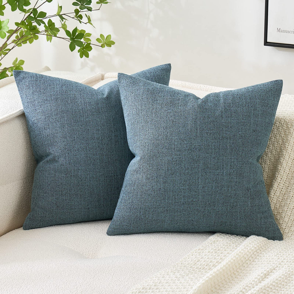 Miulee Pack Of 2 Decorative Throw Pillow Covers Linen Burlap Square Solid Farmhouse Modern Concise Throw Cushion Case Pillowcase For Sofa Car Couch 20X20 Inch Dusty Blue