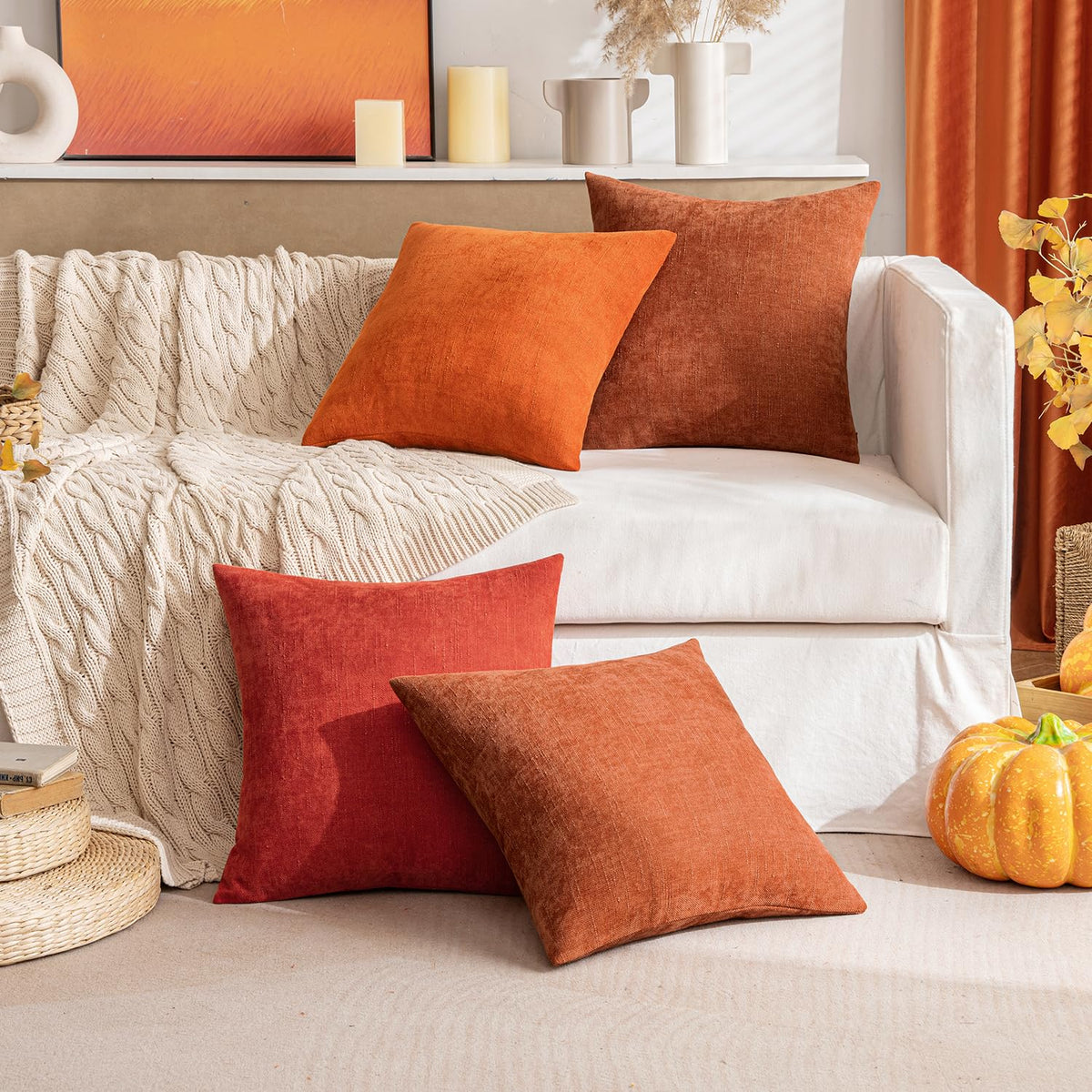 Miulee Pack Of 2 Decorative Throw Pillow Covers Soft Chenille Throw Pillows Solid Textured Cushion Covers For Couch Sofa Bedroom Living Room 18X18 Inch, Burnt Orange