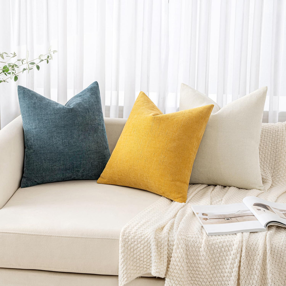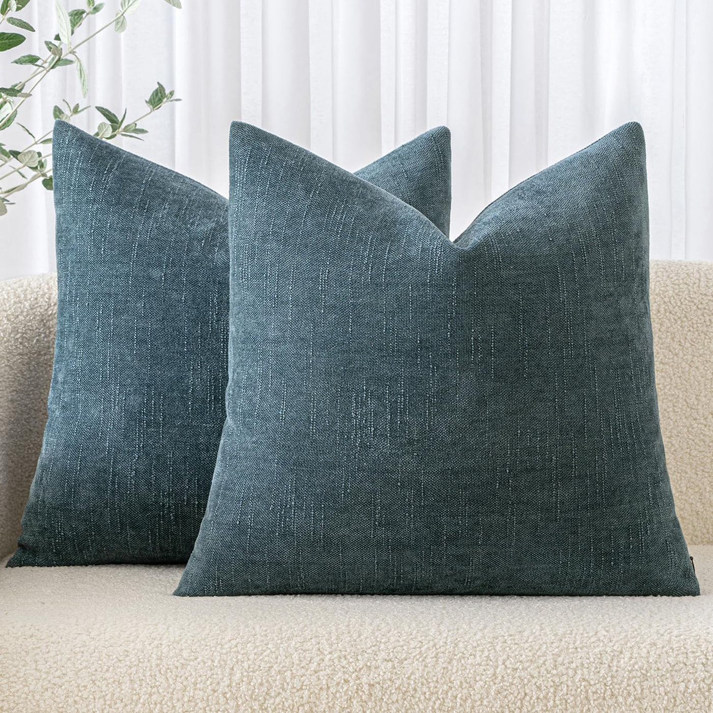 Miulee Pack Of 2 Decorative Throw Pillow Covers Soft Chenille Throw Pillows Solid Textured Cushion Covers For Couch Sofa Bedroom Living Room 18X18 Inch, Smoke Blue