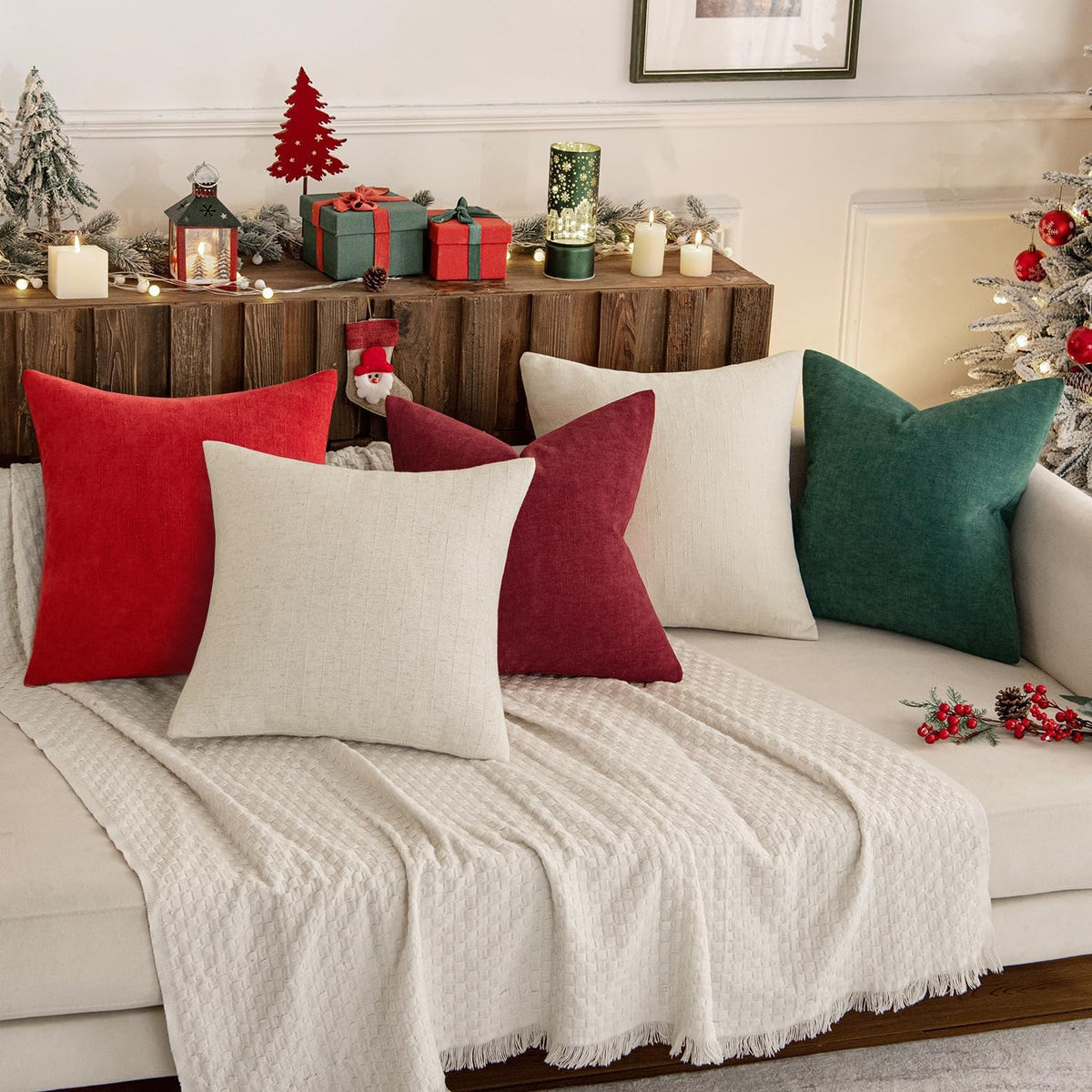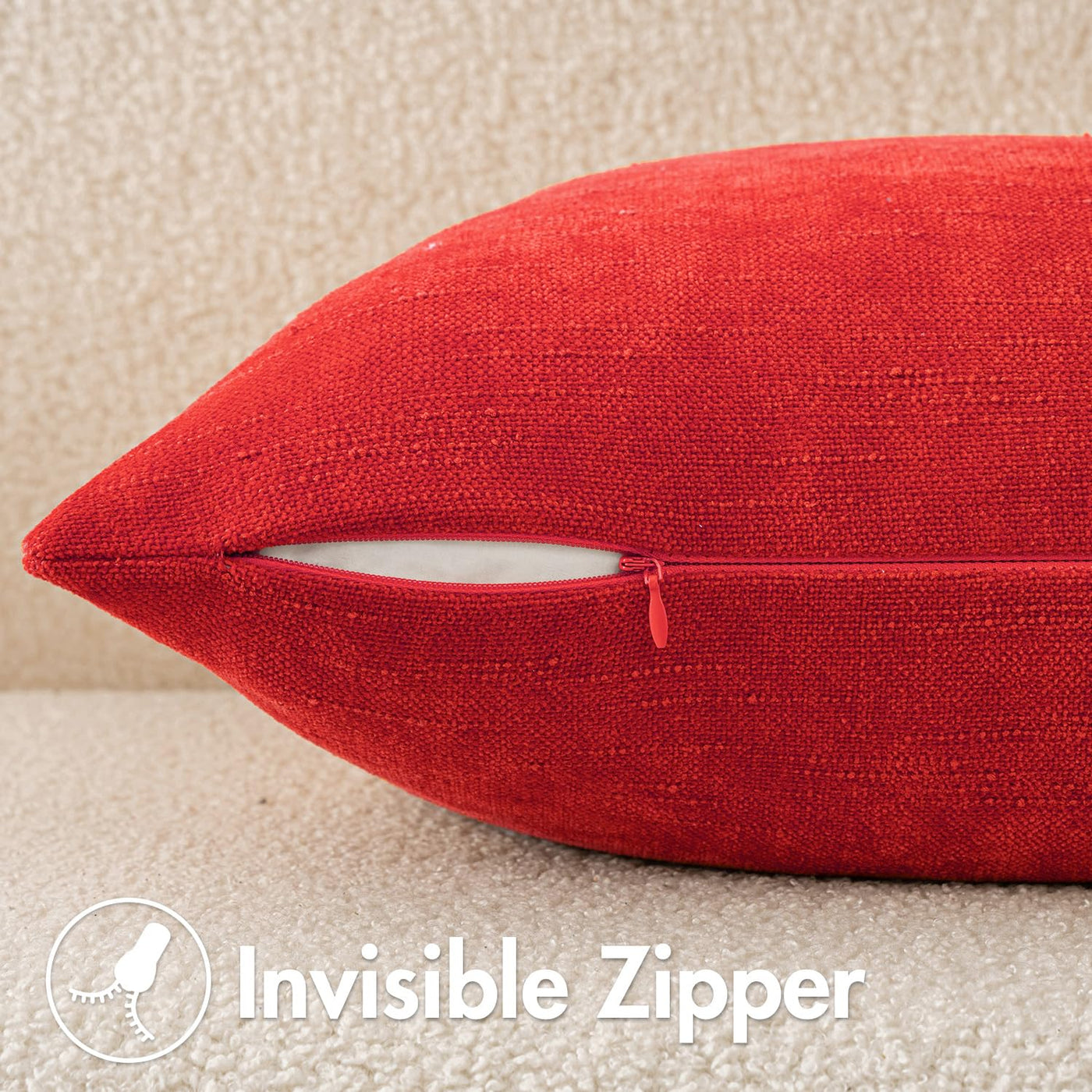 Miulee Pack Of 2 Decorative Throw Pillow Covers Soft Chenille Throw Pillows Solid Textured Cushion Covers For Couch Sofa Bedroom Living Room 20X20 Inch, Red
