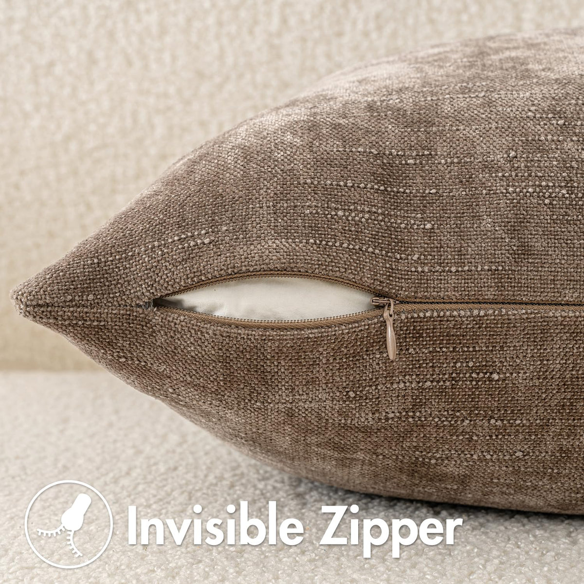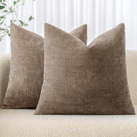 Miulee Pack Of 2 Decorative Throw Pillow Covers Soft Chenille Throw Pillows Solid Textured Euro Cushion Covers For Couch Sofa Bedroom Living Room 24X24 Inch, Taupe Grey