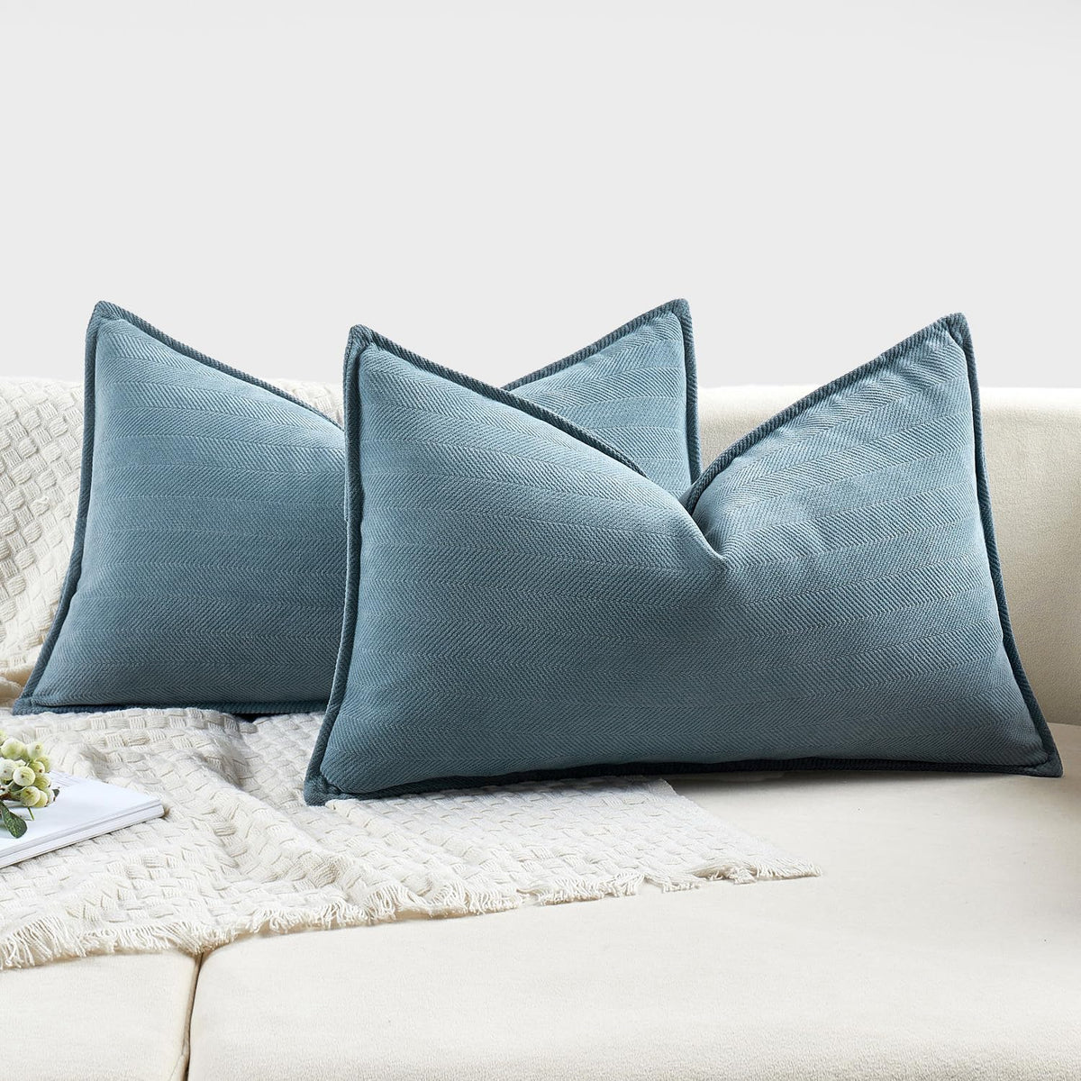 Miulee Pack Of 2 Dusty Blue Decorative Lumbar Pillow Covers 12X20 Inch Soft Chenille Luxurious Couch Throw Pillows Farmhouse Cushion Covers With Elegant Design For Sofa Bedroom Living Room Home Decor