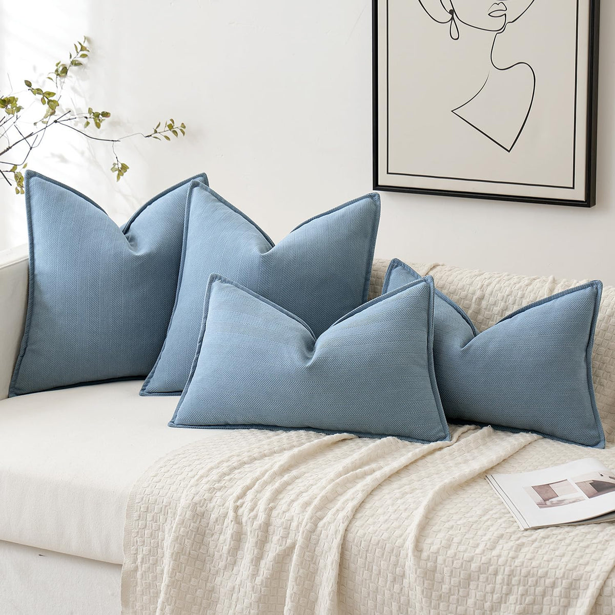 Miulee Pack Of 2 Light Blue Decorative Pillow Covers 22X22 Inch Soft Chenille Luxurious Couch Throw Pillows Farmhouse Cushion Covers Euro Shams With Elegant Design For Sofa Bed Living Room Home Decor