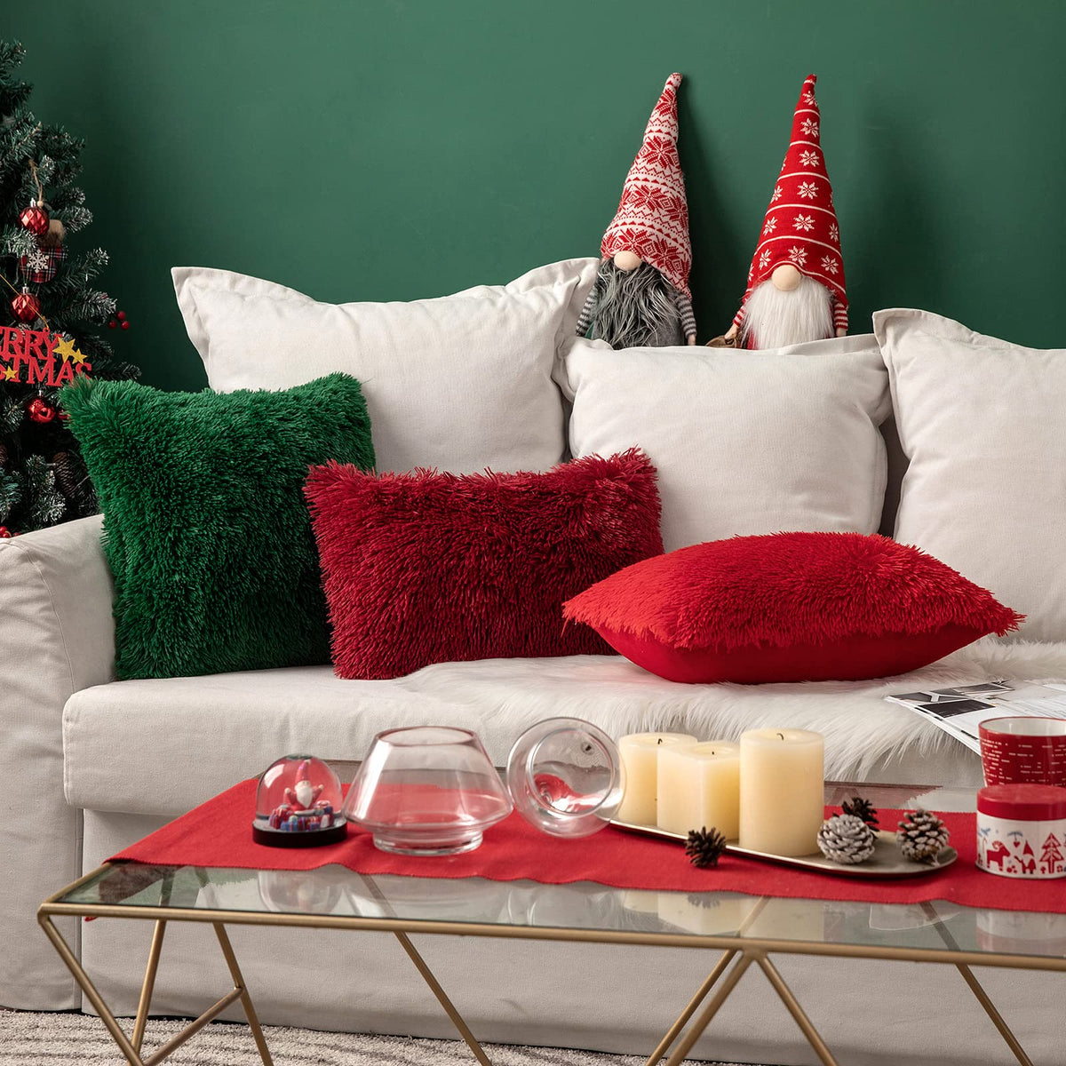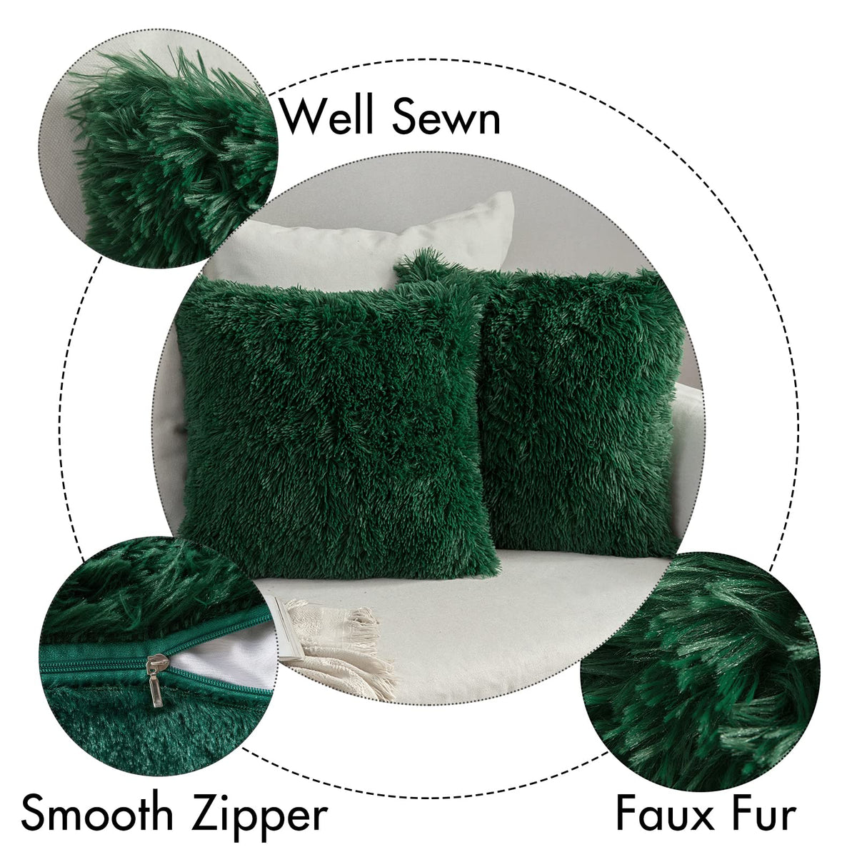 Miulee Pack Of 2 Luxury Faux Fur Fluffy Throw Pillow Covers Set Soft Deluxe Decorative Plush Fleece Pillowcases For Christmas Cushion Couch Sofa Bedroom Home 20X20 Inch Dark Green